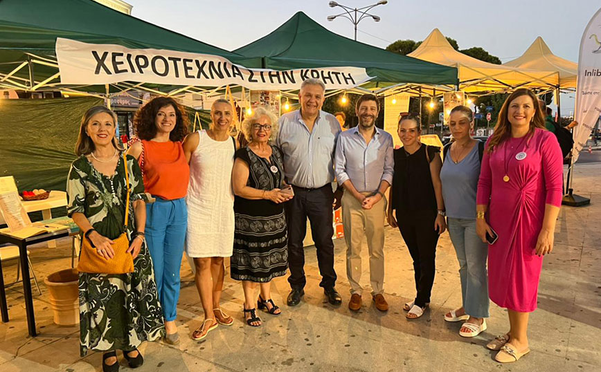 Τέλος, ξεναγήθηκε από την Μαρία Πιτσικάκη, Πρόεδρο του Αναπτυξιακού Συλλόγου Γυναικών Επιχειρηματιών Κρήτης στην έκθεση που οργάνωσε ο σύλλογος στην Πλατεία Ελευθερίας στο Ηράκλειο με Κρητικά προϊόντα οικοτεχνίας-χειροτεχνίας, όπου είχε την ευκαιρία να συνομιλήσει με τις γυναίκες επιχειρηματίες-δημιουργούς, να γνωρίσει τη δουλειά τους, να ενημερωθεί για τις δραστηριότητες τους και να συζητήσει μαζί τους.