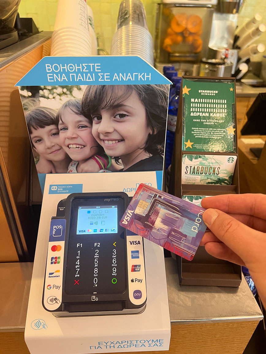 Τα σημεία είναι επιλεγμένα καταστήματα Jumbo και Starbucks στην Αθήνα και δέχονται πληρωμές- δωρεές μέσω καρτών, smartphones και φορητών συσκευών NFC.