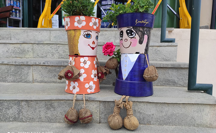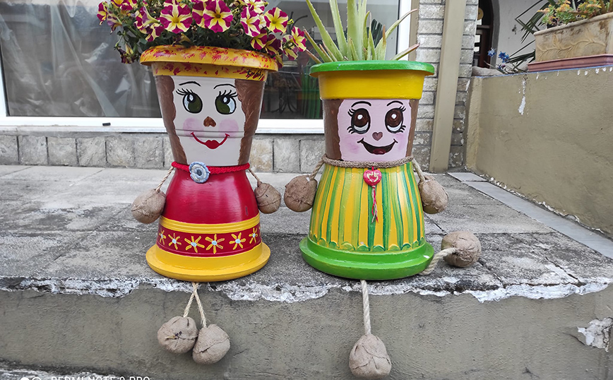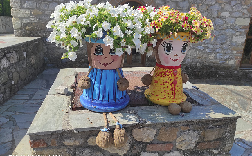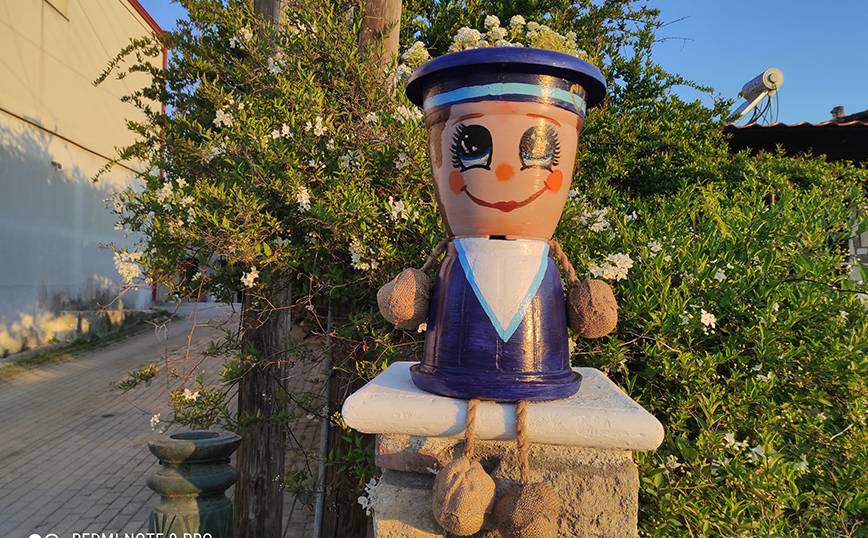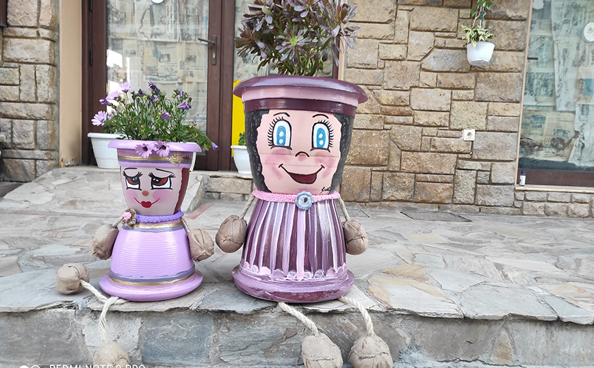 «Ήρθα σε επαφή με την καλλιτέχνιδα Γεωργία Μαρκοπούλου, η οποία διατηρεί εξοχικό στην περιοχή και φτιάξαμε φιγούρες από γλάστρες, τις οποίες πάλι τοποθετήσαμε σε διάφορα σημεία, κυρίως ψηλά, ακόμη και σε ένα μπαλκόνι εγκαταλειμμένου σπιτιού». Μάλιστα, όπως εξηγεί ο κ. Παπαγιάννης, οι 29 γλάστρες – κούκλες απεικονίζουν ντόπιους και κυρίως ηλικιωμένες που θυμάται από την παιδική του ηλικία, όπως τη γιαγιά Ξανθίππη, η οποία δεν ζει πια μαζί με την εγγονή της.