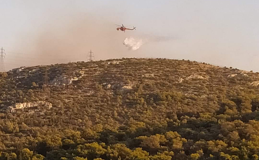 Σύμφωνα με την Πυροσβεστική, η φωτιά εκδηλώθηκε λίγο πριν τις 19:00 και είναι κοντά σε σπίτια.