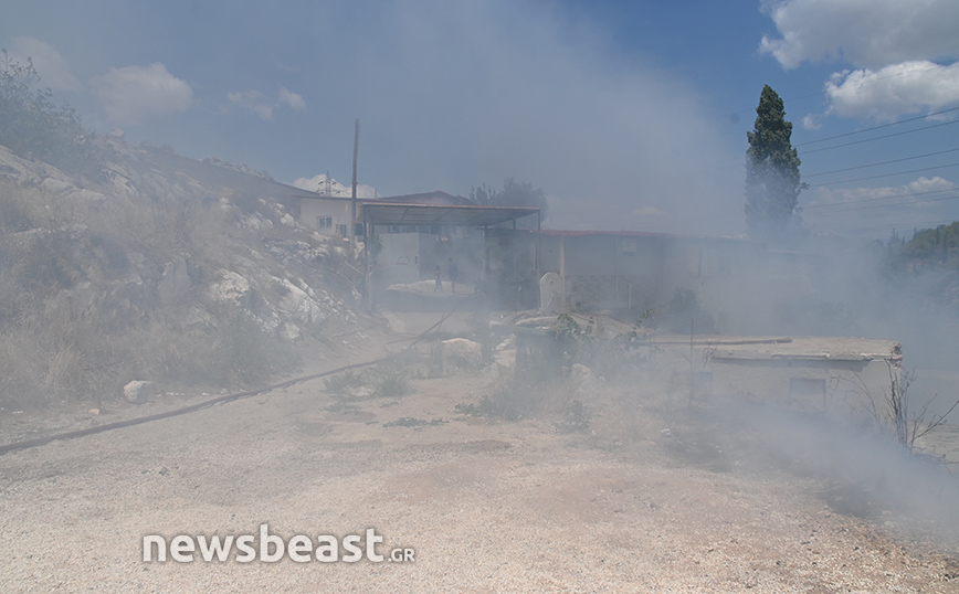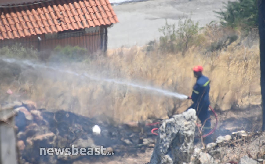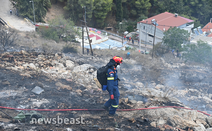 Ειδικότερα, επιχειρούν 36 πυροσβέστες με 11 οχήματα, μία ομάδα πεζοπόρου και ένα ελικόπτερο.