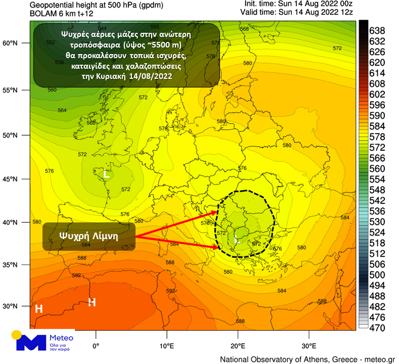 Σύμφωνα με τα προγνωστικά στοιχεία για τον καιρό του Εθνικού Αστεροσκοπείου Αθηνών / Meteo.gr, η ψυχρή λίμνη θα κινηθεί νότια και την Κυριακή 14/08 θα βρεθεί στην ανώτερη ατμόσφαιρα της χώρας μας, συνεχίζοντας την καιρική αστάθεια για τέταρτη συνεχόμενη ημέρα.