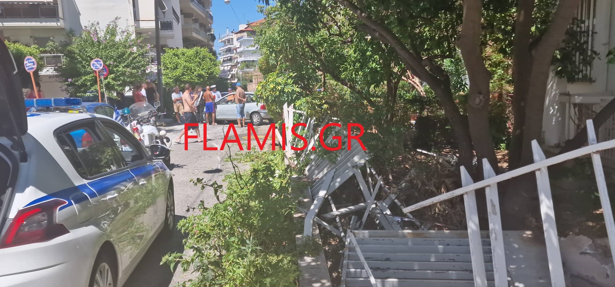 Ένα απίστευτο τροχαίο σημειώθηκε στην Πάτρα το μεσημέρι του Δεκαπενταύγουστου, με ένα αμάξι να πέφτει πάνω σε αυλή σπιτιού και να ξηλώνει όλη την περίφραξη.