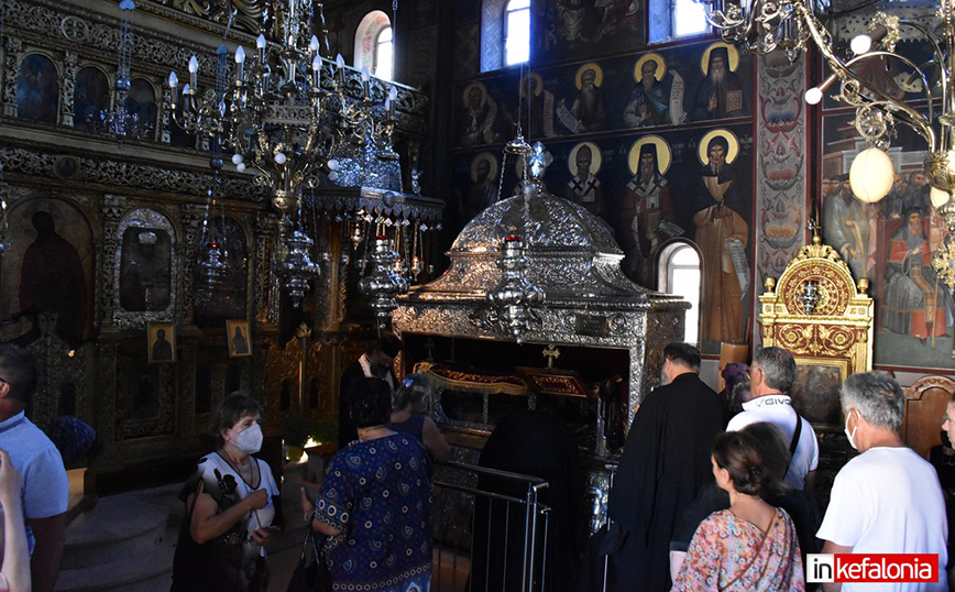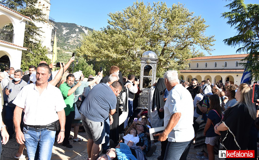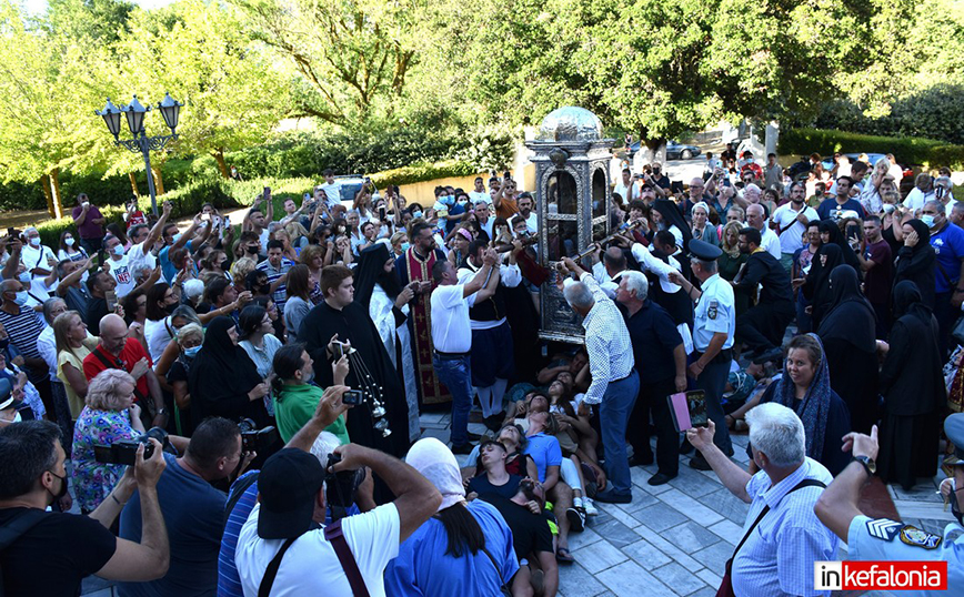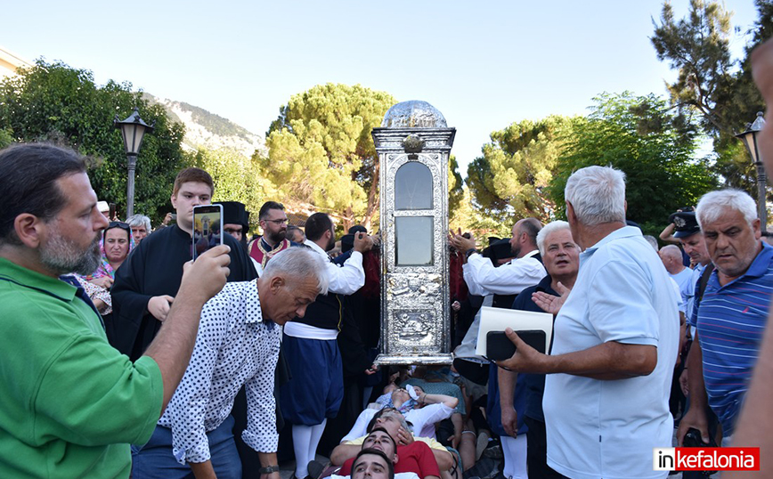 Κατά την διάρκεια της διαδρομής, η λάρνακα του Αγίου, όπως αναφέρει το inkefalonia.gr πέρασε πάνω από εκατοντάδες πιστούς που είχαν πέσει στο έδαφος.