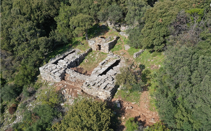 «Η ανακάλυψη ενός “τείχους”, πλάτους 1μ περίπου, δίπλα στο συγκρότημα προσφέρει νέα στοιχεία προς αυτήν την κατεύθυνση, αν και η χρήση του παραμένει ακόμα άγνωστη (άνδηρo) και ανήκει σε δεύτερη οικοδομική φάση» προσθέτει.