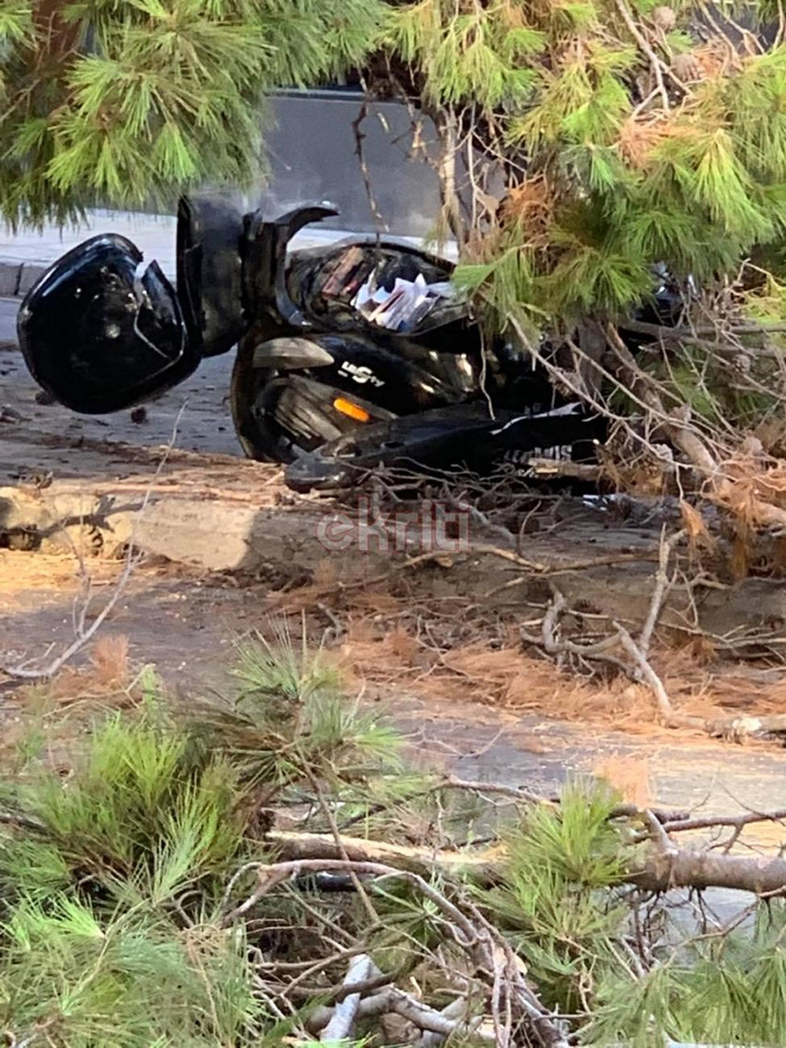 Ένας άνδρας έχασε τη ζωή του στο Ηράκλειο όταν καταπλακώθηκε από δέντρο που έπεσε πάνω στο μηχανάκι του, την ώρα που είχε σταματήσει στο φανάρι.