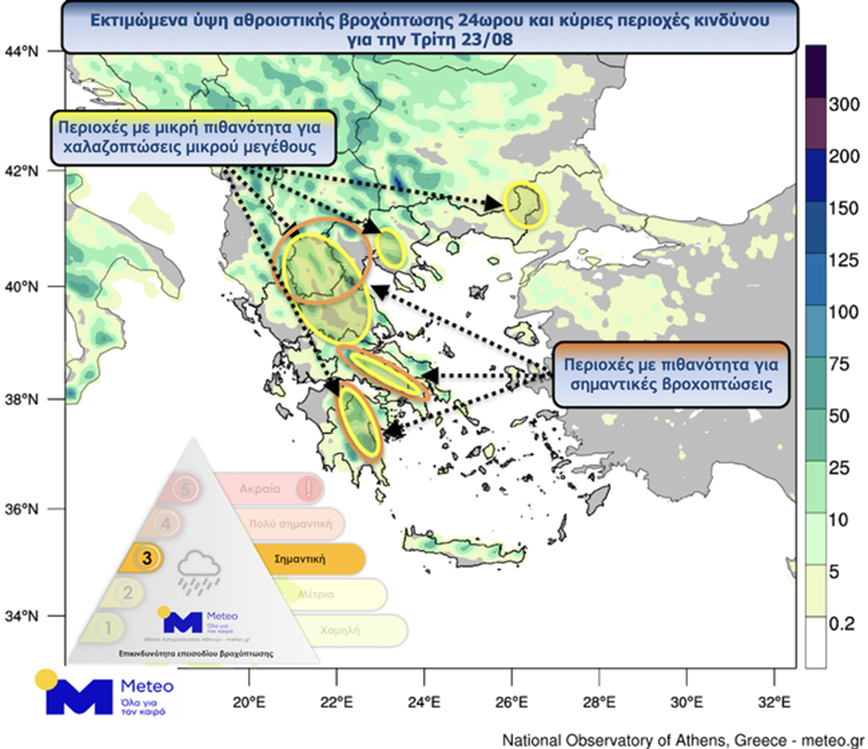 Το αναμενόμενο επεισόδιο βροχόπτωσης είναι Κατηγορίας 3, σύμφωνα με τον Δείκτη Επικινδυνότητας Επεισοδίου Βροχόπτωσης (Regional Precipitation Index – RPI) που έχει αναπτυχθεί και εφαρμόζεται επιχειρησιακά στο Εθνικό Αστεροσκοπείο Αθηνών/meteo.gr.