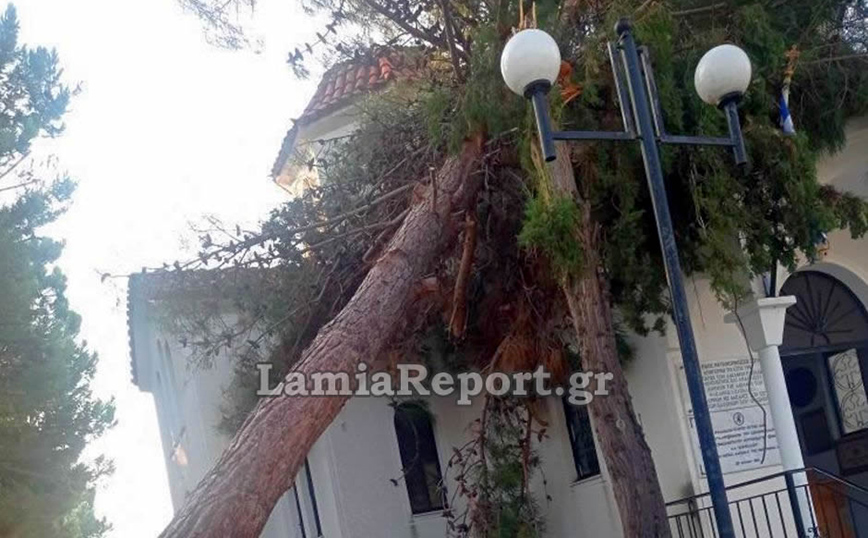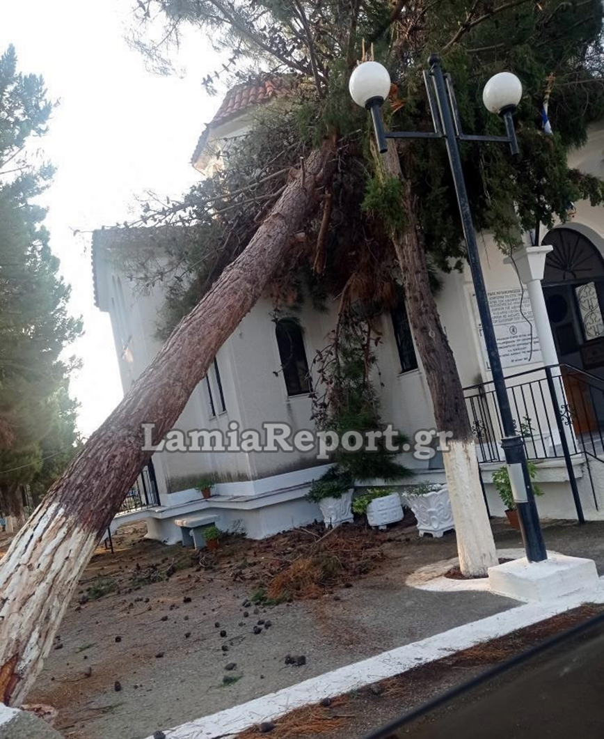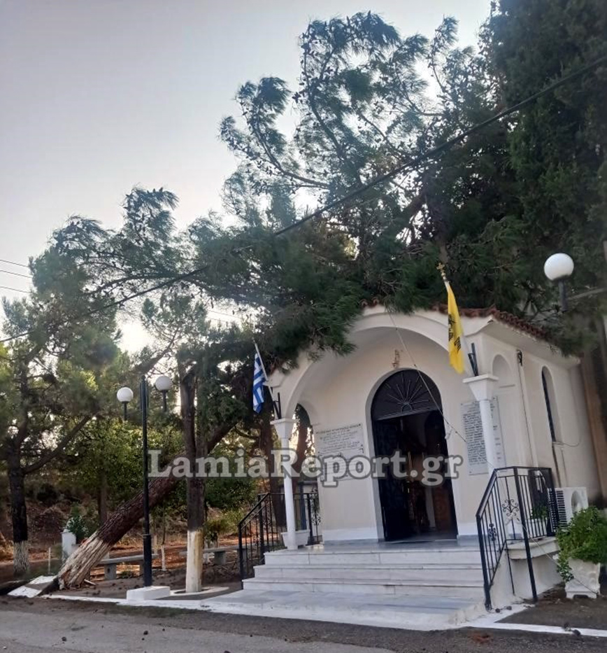 Ο δυνατός αέρας έριξε αρκετά δέντρα στους οικισμούς Μαρίνι και Μελίσσια και ένα από αυτά έπεσε στο εκκλησάκι της Μεταμόρφωσης του Σωτήρος στο Μαρίνι, προκαλώντας ζημιές στη σκεπή.