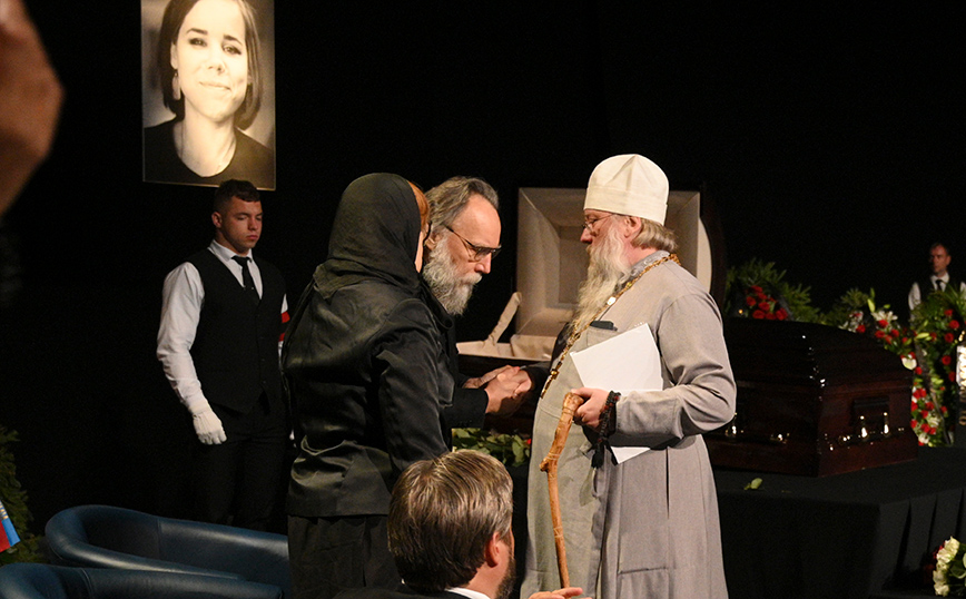 Κατά τη σημερινή κηδεία, ο Κονσταντίν Μαλοφέγεφ, στενός οικογενειακός φίλος και υπερθνικιστής μεγιστάνας των επιχειρήσεων, έθεσε τον τόνο για πολλούς από τους επικήδειους που ακολούθησαν από ρώσους πολιτικούς, χαιρετίζοντας τη δολοφονημένη γυναίκα ως μάρτυρα, που ο θάνατός της έκανε ακόμη πιο σημαντικό για τη Ρωσία να επικρατήσει εναντίον της Ουκρανίας.