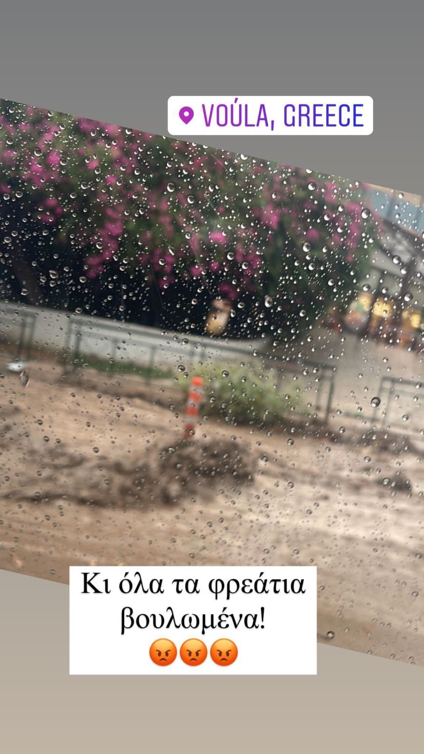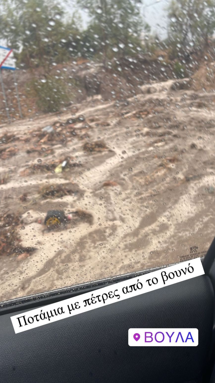 «Βουλιαγμένης, ύψος Βούλας τώρα! Ποτάμια και χείμαρροι!! Κοτρώνες και σταματημένα αυτοκίνητα. Είμαι 1,5 ώρα στον δρόμο για απόσταση 30′. Πολύ επικίνδυνη κατάσταση! Για μια ακόμη φορά, ανύπαρκτη η πρόνοια…» έγραψε στο Instagram story της το οποίο μοιράστηκε με τους διαδικτυακούς της φίλους η Ζέτα Δούκα.