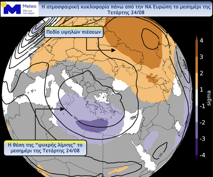 Κύρια χαρακτηριστικά του καιρού κατά τη διάρκεια της Τετάρτης 24/08 θα είναι: