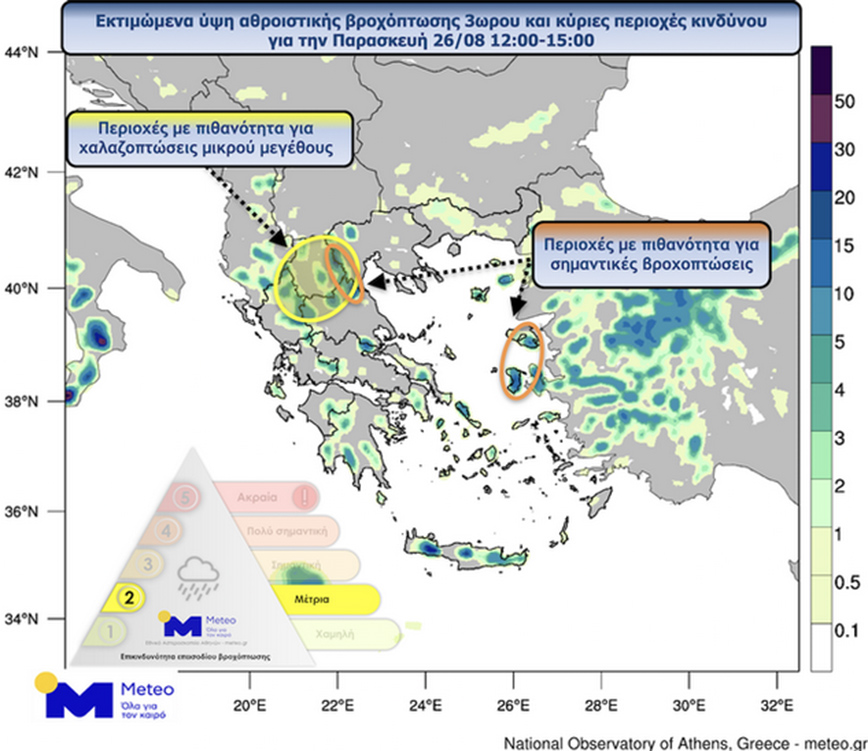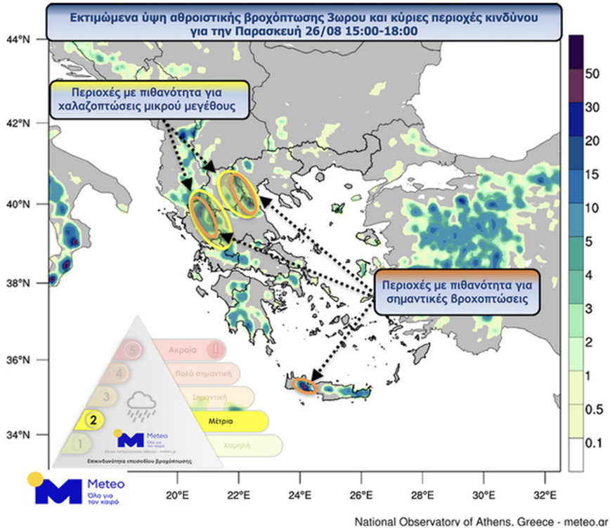 Το αναμενόμενο επεισόδιο βροχόπτωσης είναι Κατηγορίας 2 σύμφωνα με τον Δείκτη Επικινδυνότητας Επεισοδίου Βροχόπτωσης (Regional Precipitation Index – RPI) που έχει αναπτυχθεί και εφαρμόζεται επιχειρησιακά στο Εθνικό Αστεροσκοπείο Αθηνών / meteo.gr.