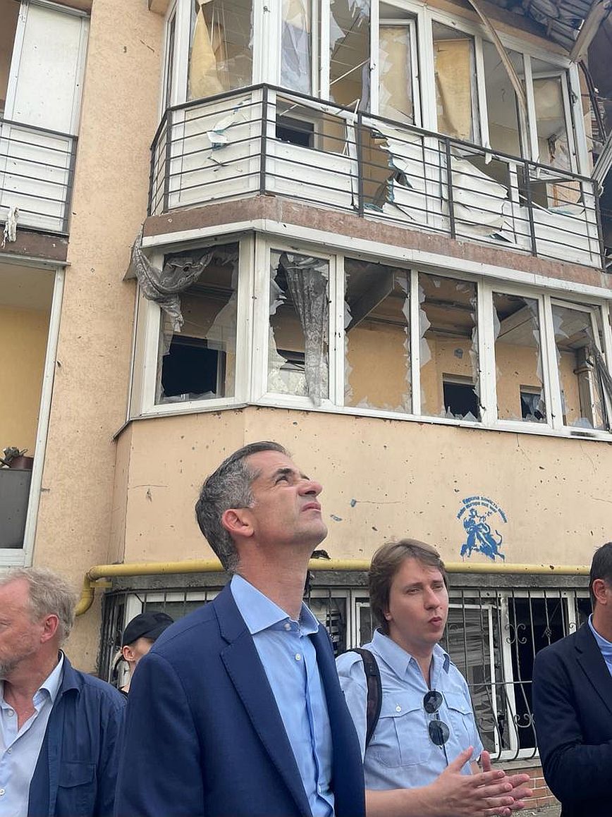 Η εικόνα βέβαια δεν μαρτυρά όλη την αλήθεια. Μας ξεναγεί ο φίλος και συνάδελφος Ιβαν Φεντοροφ, ο Δήμαρχος Μελιτόπολης που είχε απαχθεί την άνοιξη. Ο μισός πληθυσμός του Κιέβου έχει αναγκαστεί να εγκαταλείψει την πόλη του. Υπολογίζεται πως συνολικά 10 εκατομμύρια Ουκρανοί, δηλαδή το ένα τέταρτο του πληθυσμού της χώρας, έχουν εκτοπιστεί από τις εστίες τους. Λίγα χιλιόμετρα από το κέντρο αντικρίζουμε κατεστραμμένα κουφάρια κτιρίων. Για τα δικά μας δεδομένα είναι σαν να έχει μετατραπεί το Μαρούσι σε πεδίο μάχης, τόσο κοντά σε ό,τι θα μας αφορούσε, φτάσανε οι εισβολείς, ενώ το χώμα στους μαζικούς τάφους μεγάλων και μικρών που χάθηκαν τόσο άδικα, παραμένει νωπό… Τα συναισθήματα του σοκ και του δέους εναλλάσσονται» σημειώνει στο άρθρο του ο κ. Μπακογιάννης.
