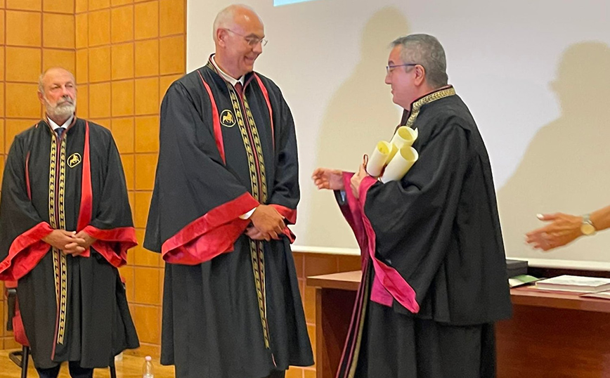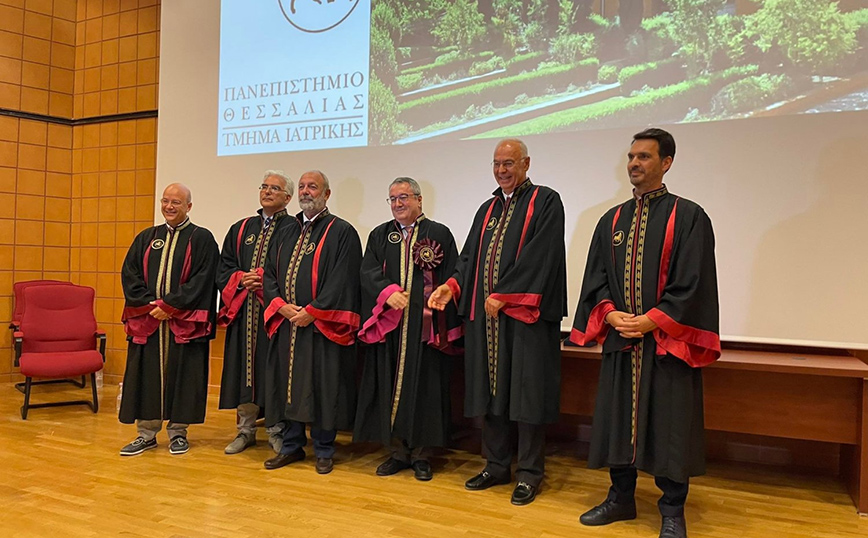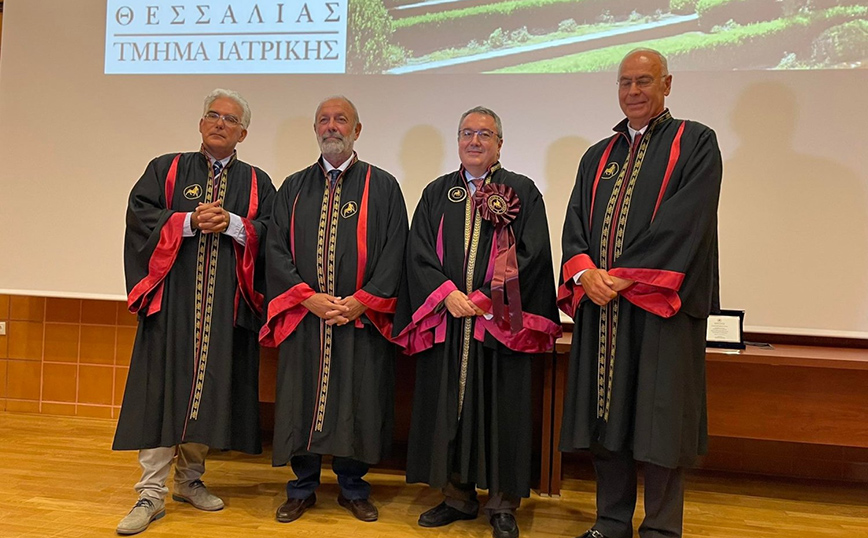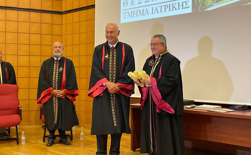 Ο Ηλίας Μόσιαλος έλαβε τον τίτλο του Επίτιμου Διδάκτορα του Πανεπιστημίου Θεσσαλίας σε εκδήλωση που πραγματοποιήθηκε στο Αμφιθέατρο ΙΠΠΟΚΡΑΤΗΣ του Τμήματος Ιατρικής στη ΒΙΟΠΟΛΗ Λάρισας.