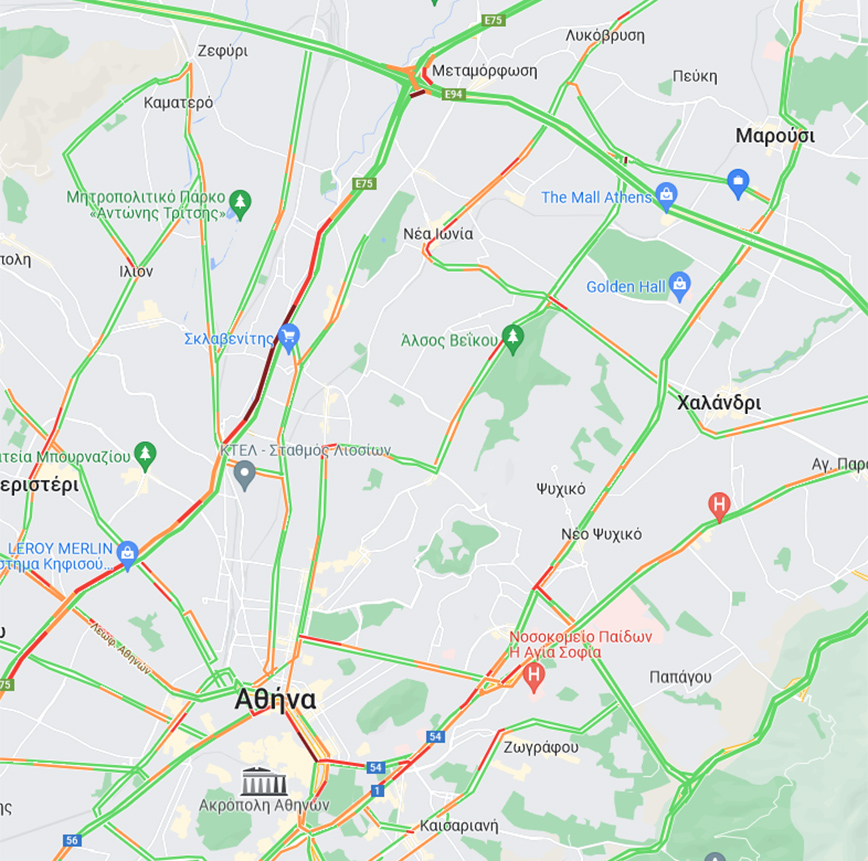 Ο χάρτης με την κίνηση στους δρόμους αυτή την ώρα…