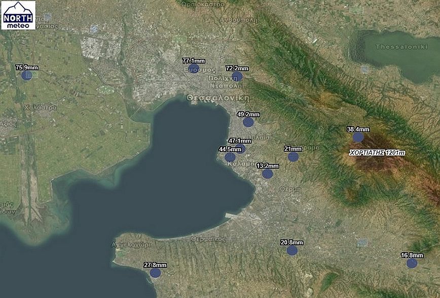 Συγκεκριμένα το σύνολο της ποσότητας νερού που καταγράφηκε από τα μεσάνυχτα μέχρι και χθες το πρωί από τους σταθμούς του northmeteo ήταν αυτό: