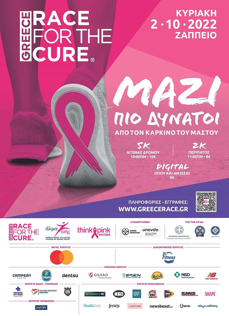 «Με πολλή χαρά σας προσκαλούμε στο Greece Race for the Cure® 2022 στις 1 & 2 Οκτωβρίου, το οποίο, μετά από δύο χρόνια αποκλειστικά διαδικτυακής διεξαγωγής, επιστρέφει στο Ζάππειο αλλά και σε κάθε γωνιά της Ελλάδας.