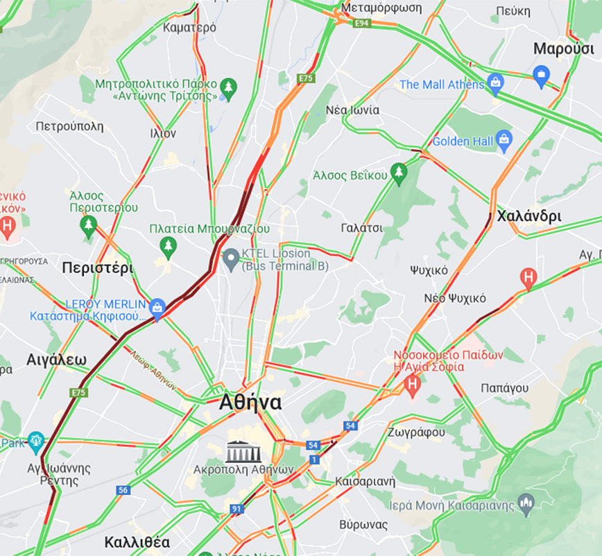Παράλληλα, σύμφωνα με την τροχαία, αυξημένη κίνηση υπάρχει αυτή την ώρα στα εξής σημεία: