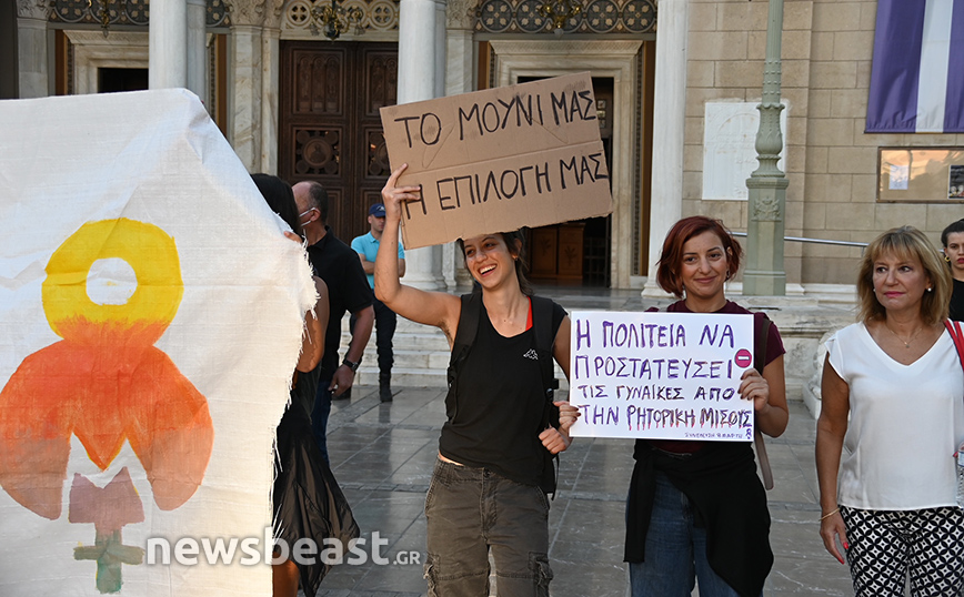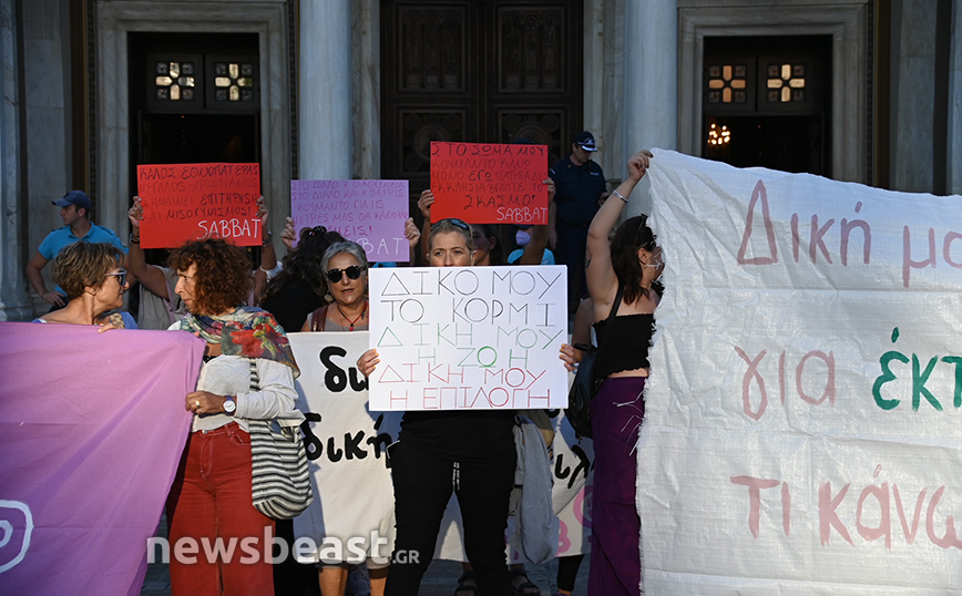 «Δική μου μήτρα, δική μου επιλογή», «το μ@@@ι μας, η επιλογή μας» είναι κάποια από τα συνθήματα που γράφουν τα πλακάτ των μελών γυναικείων συλλόγων που πραγματοποιούν αυτή την ώρα διαμαρτυρία έξω από τη Μητρόπολη Αθηνών για την εγκύκλιο κατά των αμβλώσεων που διαβάζεται σήμερα στις εκκλησίες όλης της χώρας.