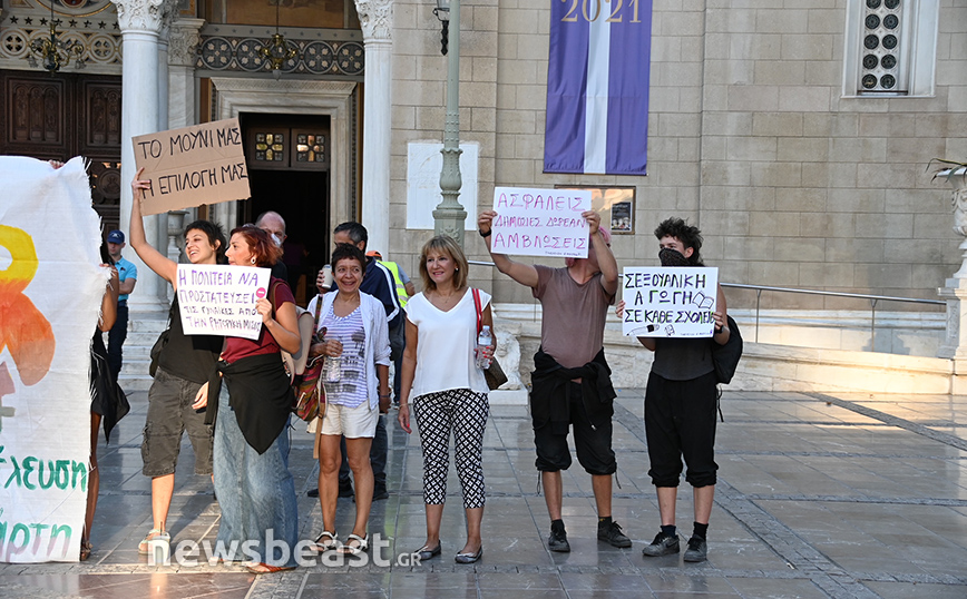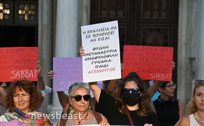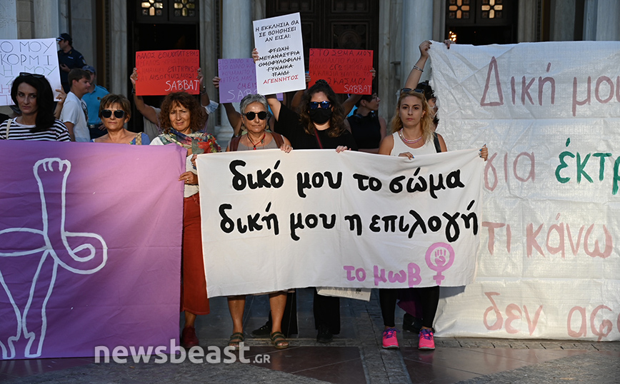 Οι γυναίκες συγκεντρώθηκαν έξω από τη Μητρόπολη από νωρίς το πρωί της Πέμπτης για να εκφράσουν την αντίθεσή τους στην εγκύκλιο κατά των αμβλώσεων. Φώναξαν συνθήματα και σήκωσαν πανό και πλακάτ με συνθήματα για την αυτοδιάθεση του γυναικείου σώματος.