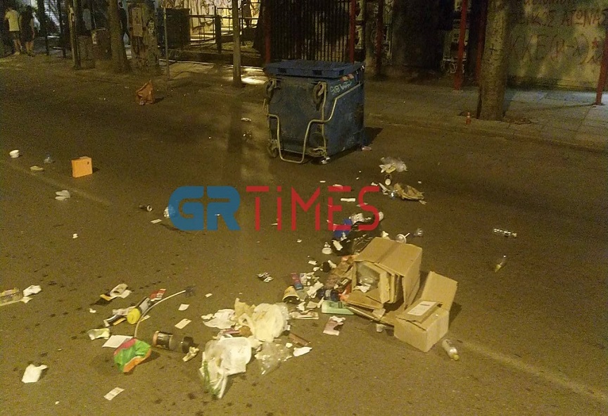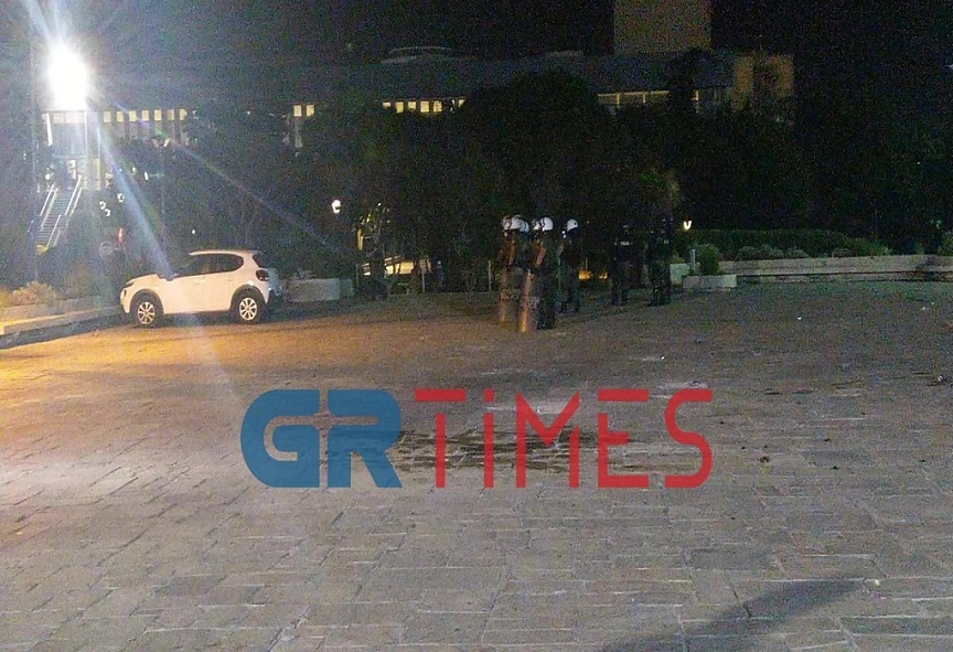 Η ομάδα των αγνώστων έστησε αυτοσχέδια οδοφράγματα κι έβαλε φωτιές σε κάδους απορριμάτων. Επί του παρόντος, οι αστυνομικές δυνάμεις έχουν απωθήσει το μεγαλύτερο όγκο των διαδηλωτών στην Εγνατία, στο ύψος της Αριστοτέλος, ενώ γίνονται προσπάθειες για να διαλυθεί το πλήθος. Για την ώρα, δε, η κατάσταση δείχνει να έχει εκτονωθεί.