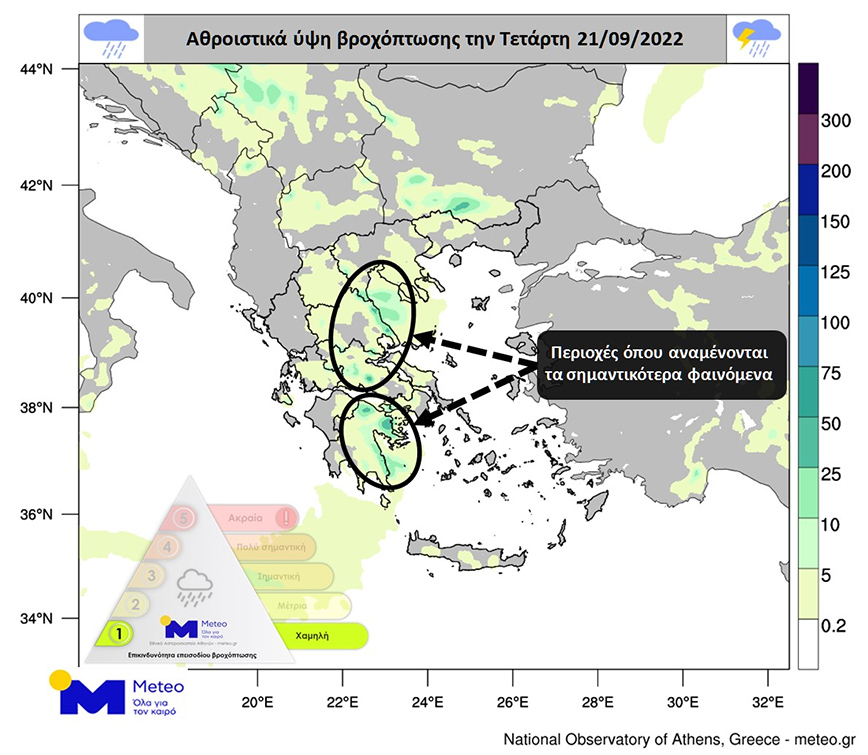 Οι σημαντικότερες βροχοπτώσεις αναμένονται στην Ανατολική Θεσσαλία, στη Χαλκιδική, στην Κεντρική Στερεά, στην Εύβοια, στις Σποράδες και στην Ανατολική Πελοπόννησο. Το αναμενόμενο επεισόδιο είναι Κατηγορίας 1 όσον αφορά τον Δείκτη Επικινδυνότητας Επεισοδίου Βροχόπτωσης (Regional Precipitation Index – RPI) του meteo.
