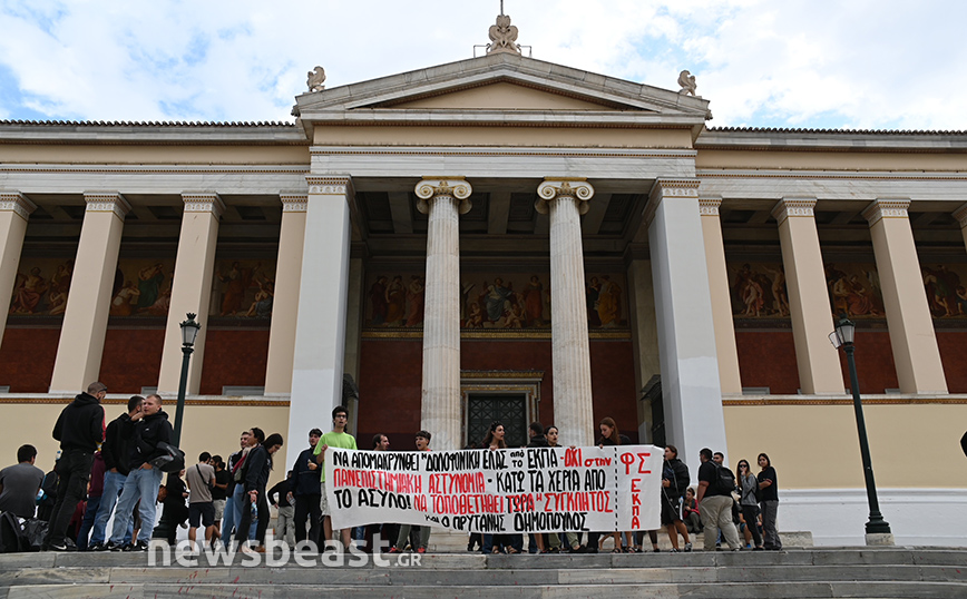 Τη διαμαρτυρία τους για τη λειτουργία της πανεπιστημιακής αστυνομίας συνεχίζουν οι φοιτητές της Αθήνας που το πρωί της Τετάρτης (21/9) έδωσαν ραντεβού έξω από την Πρυτανεία.