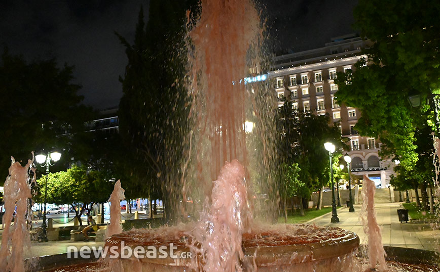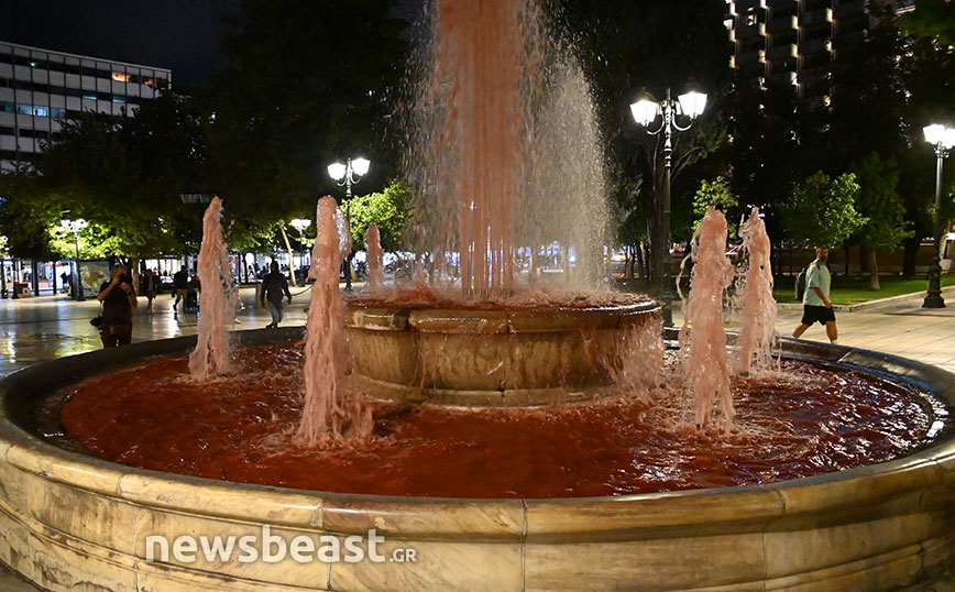 Στο Σύνταγμα πραγματοποιήθηκε συγκέντρωση διαμαρτυρίας για τα τέσσερα χρόνια από την δολοφονία του Ζακ Κωστόπουλου και οι διαδηλωτές πέταξαν χρώμα στο σιντριβάνι, ώστε να θυμίζει αίμα.