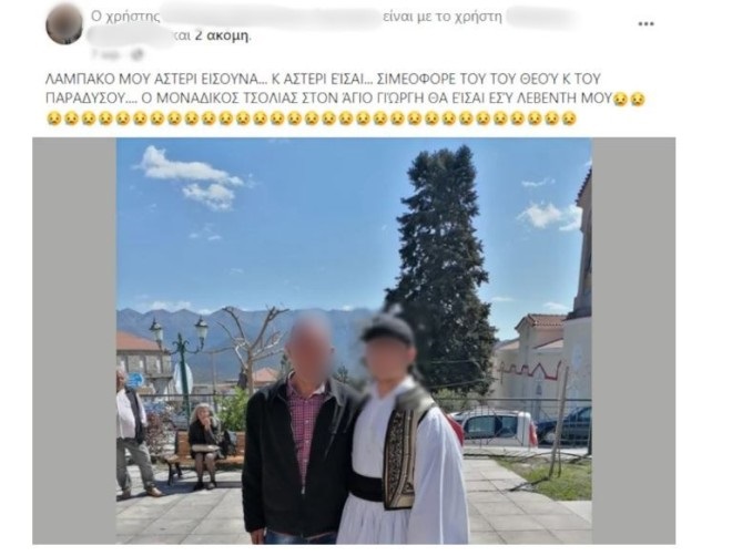 «Λαμπάκο μου, αστέρι ήσουν… Κι αστέρι είσαι… Σημαιοφόρε του Θεού και του Παραδείσου… Ο μοναδικός τσολιάς στον Άγιο Γιώργη θα είσαι εσύ λεβέντη μου», είναι η ανάρτηση του πατέρα του αδικοχαμένου παιδιού.