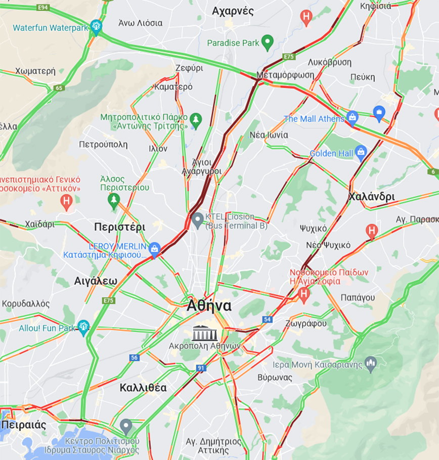 Σύμφωνα με την Τροχαία Αττικής, η κίνηση είναι αυξημένη στα εξής σημεία: