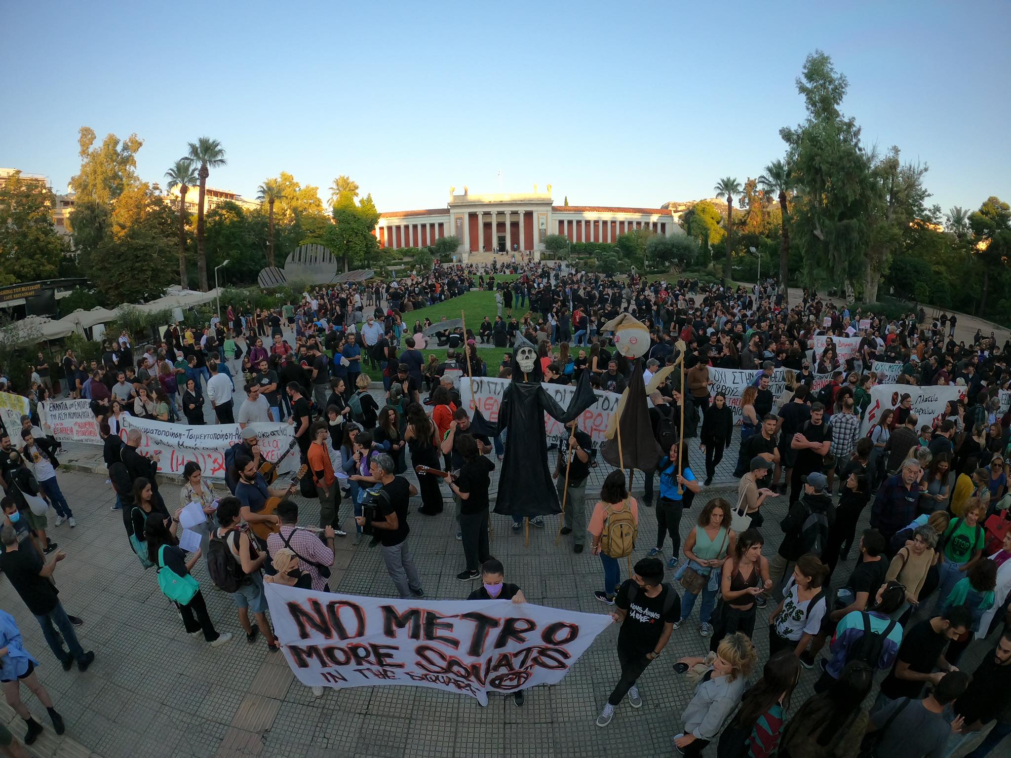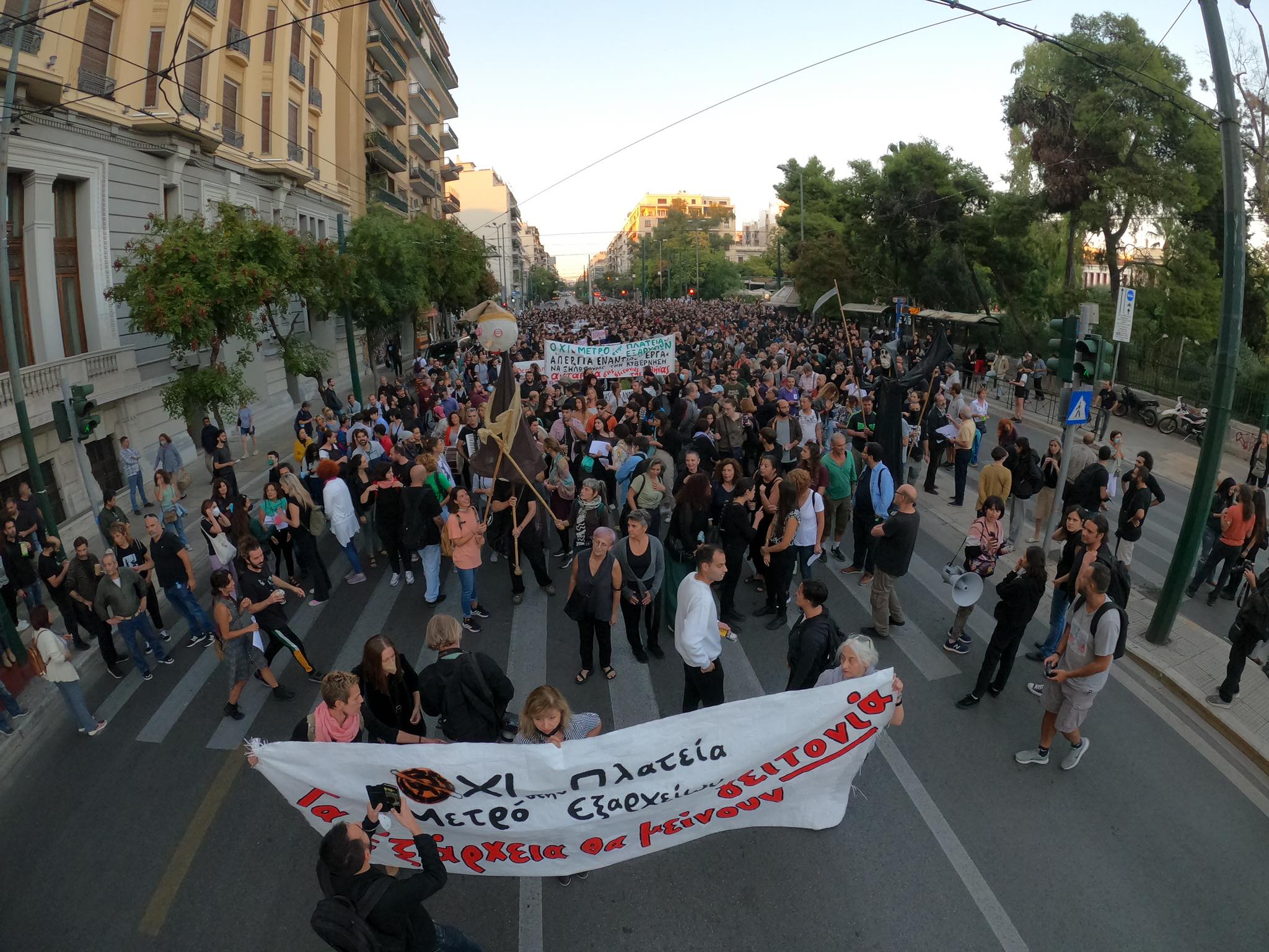 Σε εξέλιξη βρίσκεται αυτή τη στιγμή πορεία κατά της δημιουργίας σταθμού μετρό στην Πλατεία Εξαρχείων.
