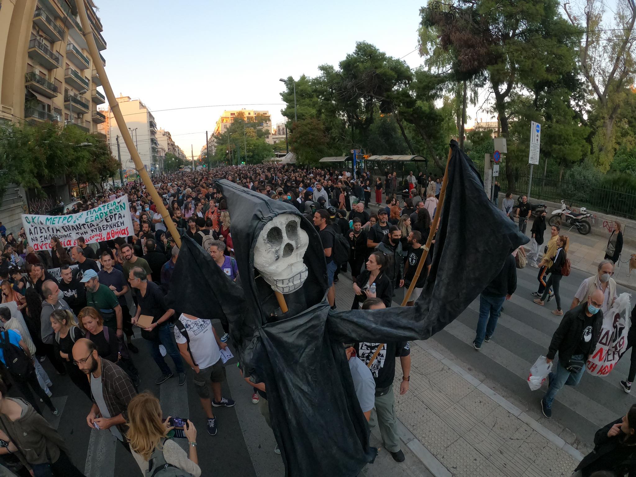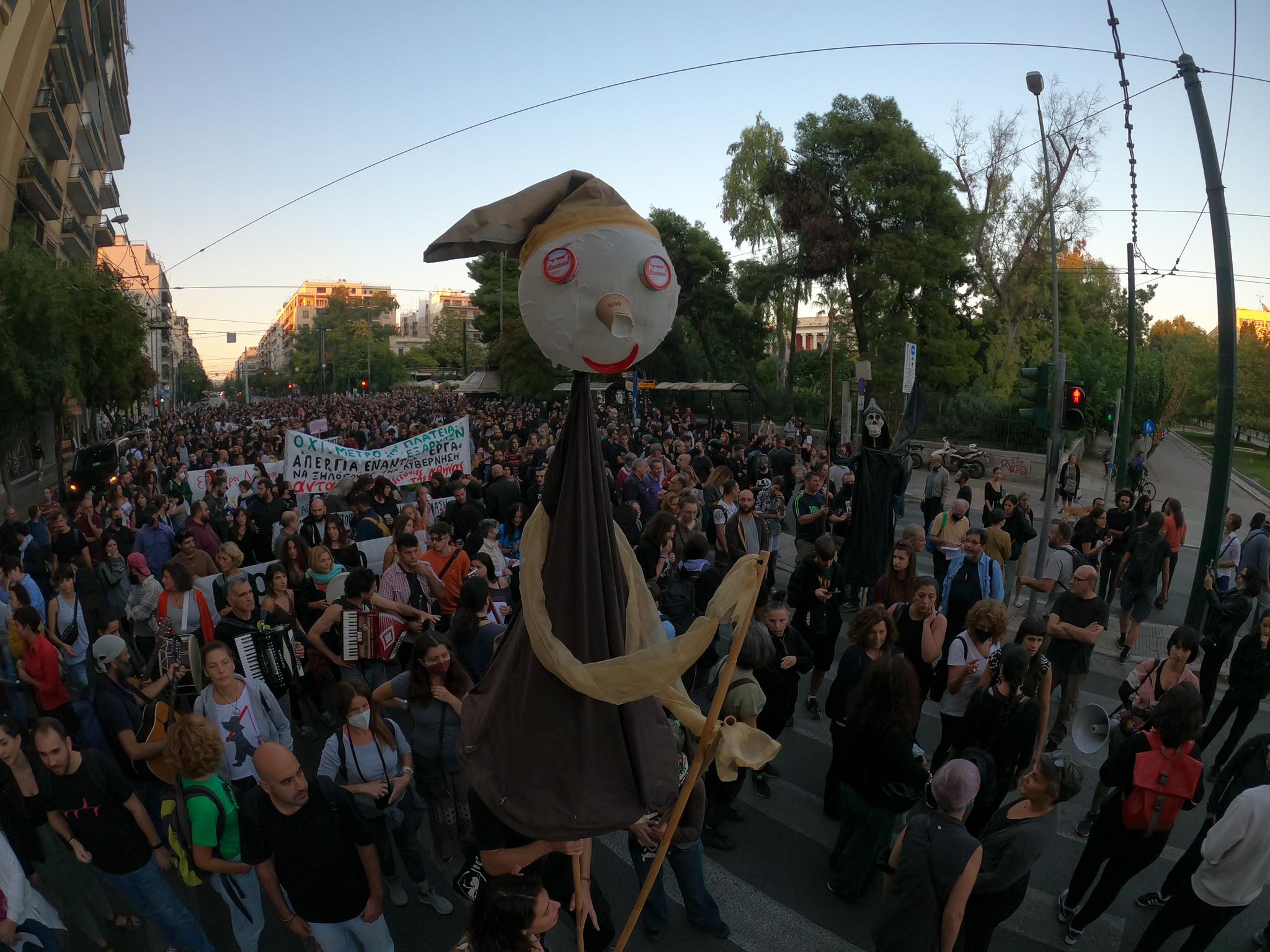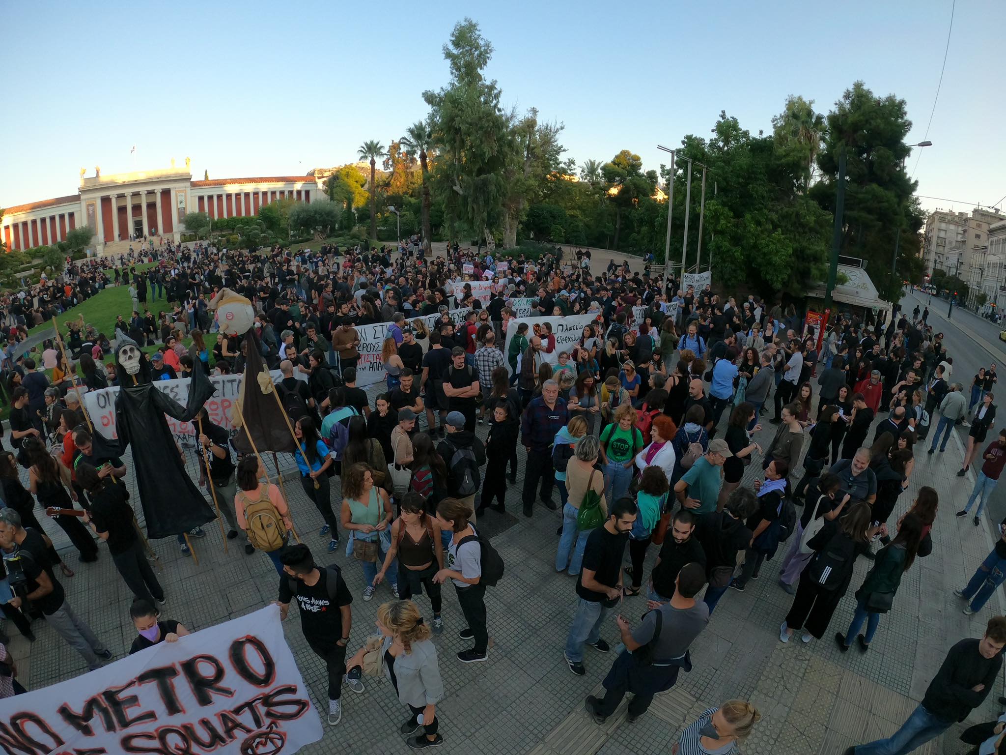Ο κόσμος είχε συγκεντρωθεί νωρίτερα στο Αρχαιολογικό μουσείο από όπου ξεκίνησε και η πορεία στα στενά των Εξαρχείων.