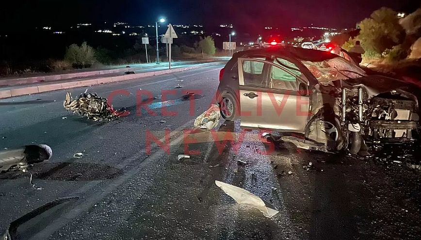 Σύμφωνα με τo Cretalive.gr όλα συνέβησαν όταν μια μηχανή συγκρούστηκε με ενοικιαζόμενο αυτοκίνητο στο οποίο επέβαιναν τουρίστες, υπό αδιευκρίνιστες συνθήκες.