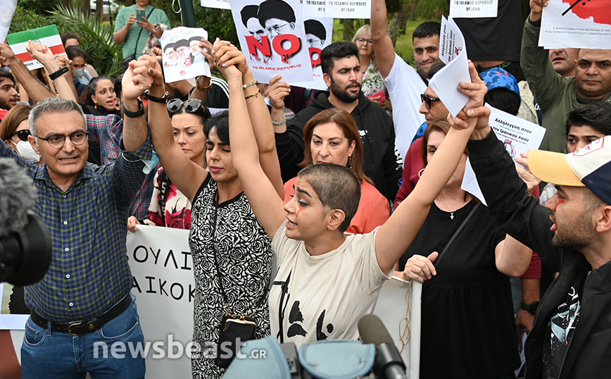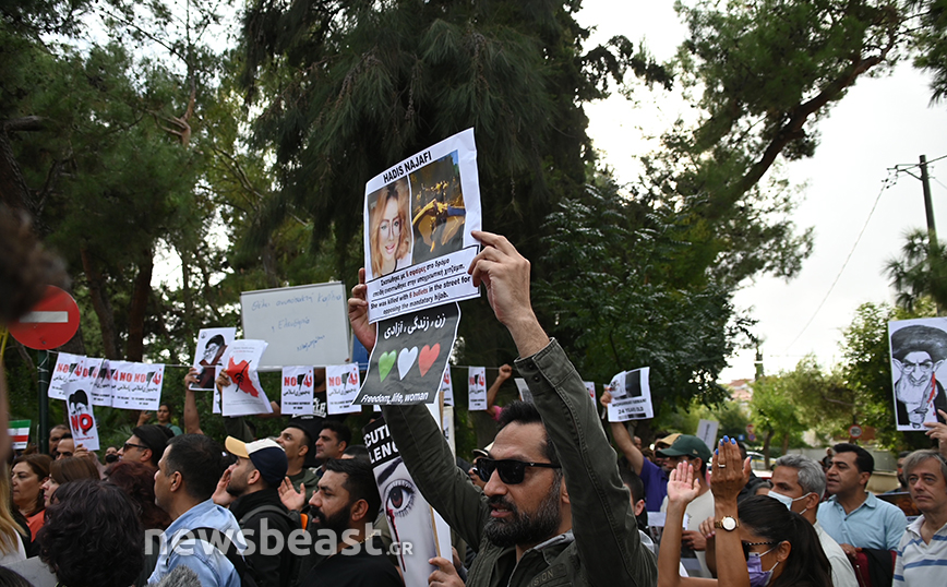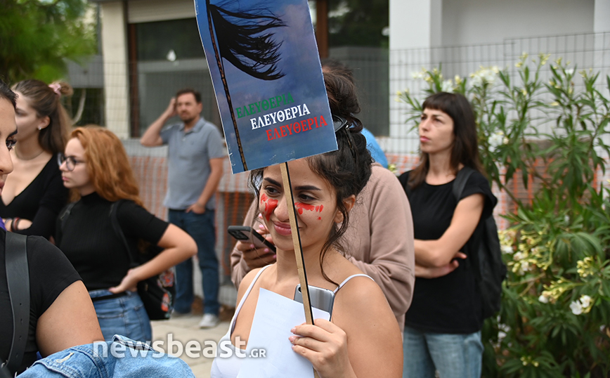 Δείτε φωτογραφίες από τη συγκέντρωση αλληλεγγύης στις γυναίκες του Ιράν έξω από την πρεσβεία: