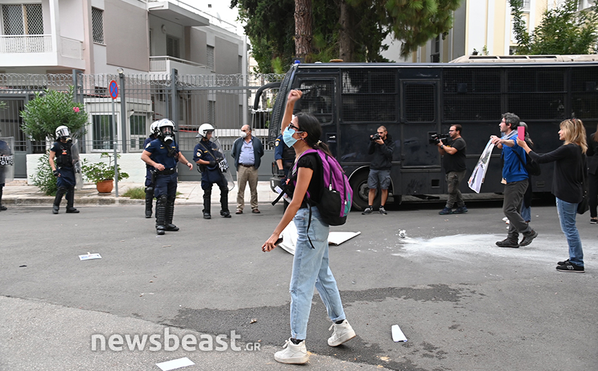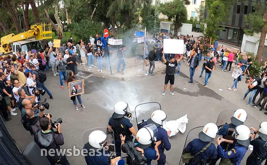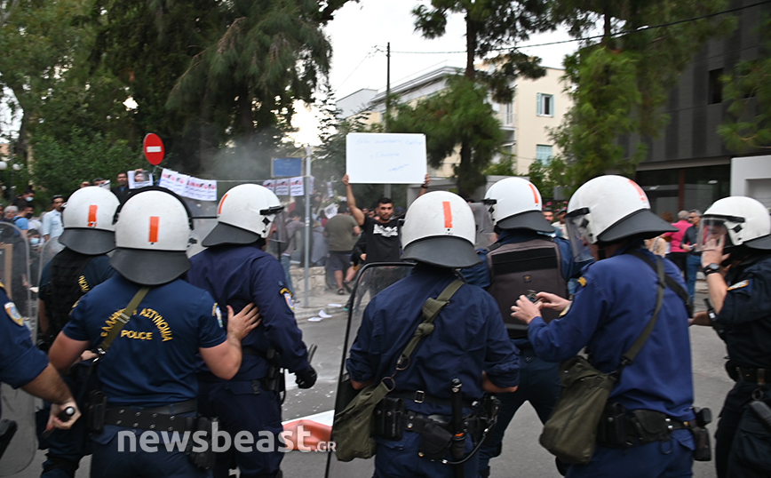 Η αστυνομία για να απωθήσει τους διαδηλωτές προχώρησε σε χρήση χημικών και τα πνεύματα λίγα λεπτά αργότερα ηρέμησαν.