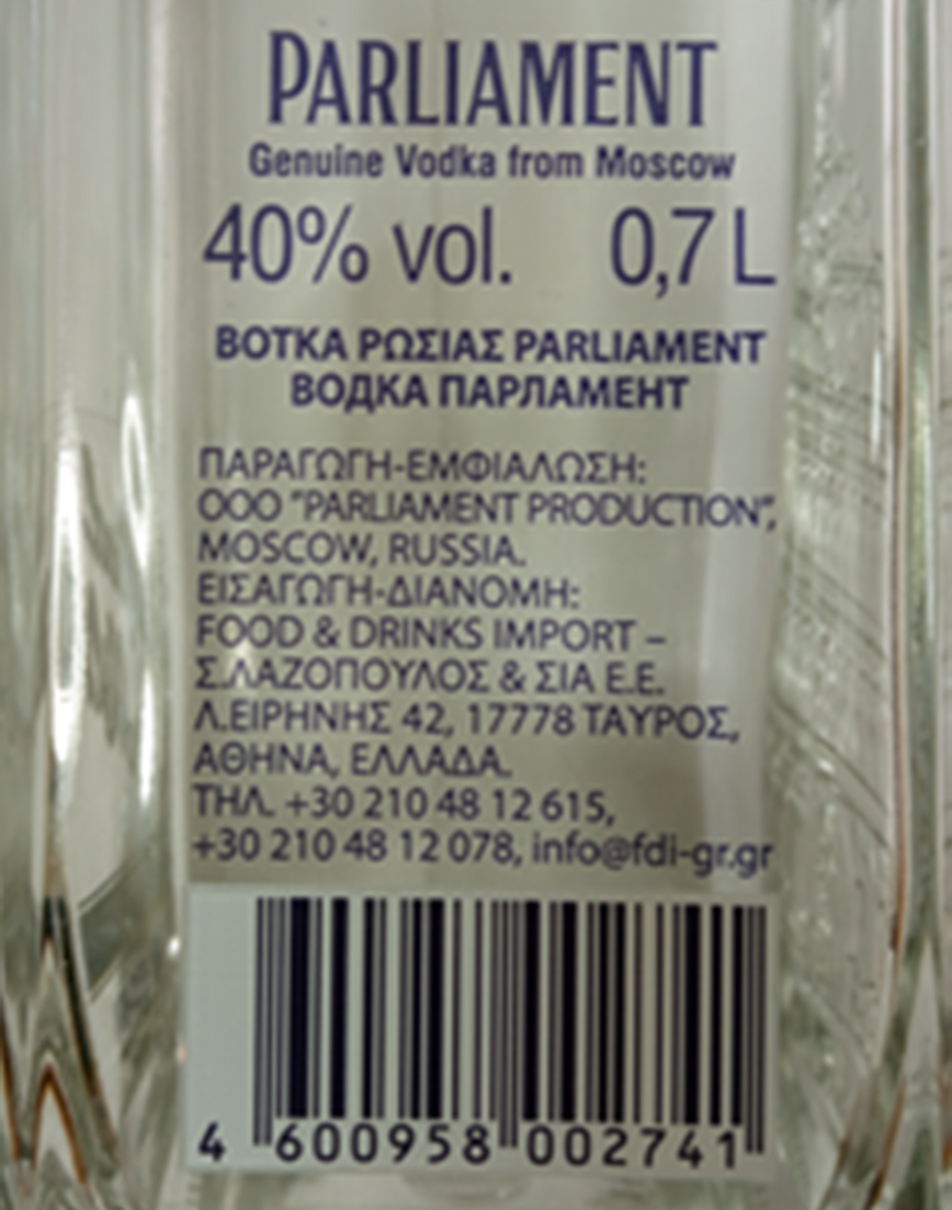 Στην ανάκληση της βότκας «PARLIAMENT» προχωράει το Γενικό Χημείο της ΑΑΔΕ. Η ανάκληση αφορά το ποτό με αλκοόλ 40% vol., που συνοδεύεται από την ένδειξη «Purified with Milk», σε προσυσκευασία 0.7L.