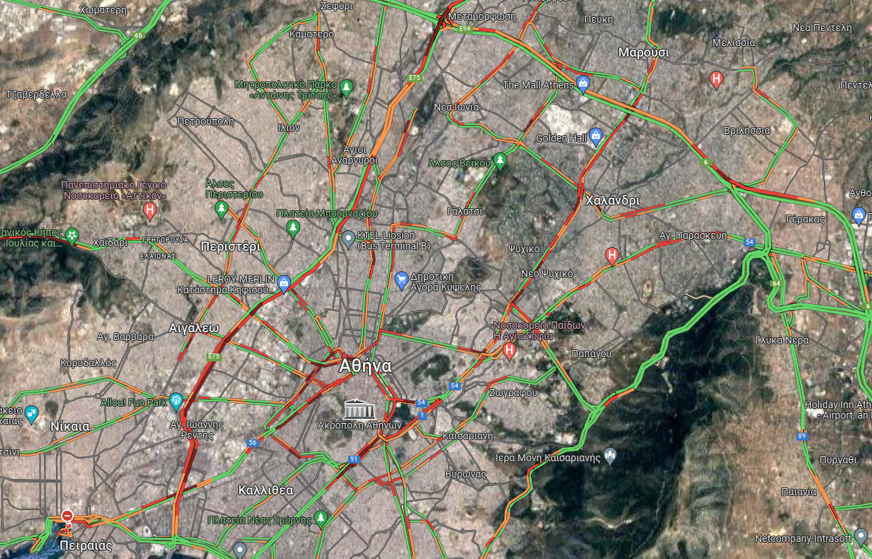Δείτε χάρτη με την κατάσταση που επικρατεί στους δρόμους της Αθήνας