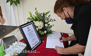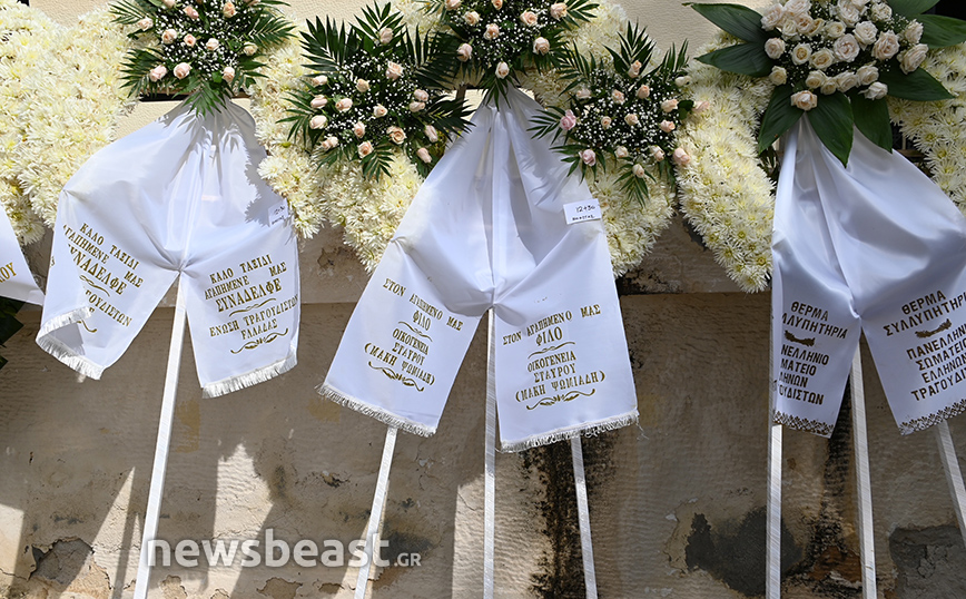 Ανάμεσα σε εκείνους που έχουν στείλει στεφάνια είναι ο Δημήτρης Κοπελούζος, η υπουργός Πολιτισμού και Αθλητισμού, Λίνα Μενδώνη, η ΠΑΕ Ολυμπιακός, ο Βαγγέλης Μαρινάκης.