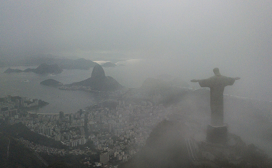 Πυκνή ομίχλη πάνω από το Ρίο ντε Τζανέιρο, στη Βραζιλία, λίγο πριν οι κάτοικοι της χώρας προσέλθουν στις κάλπες για τις γενικές εκλογές. Το επιβλητικό άγαλμα του Χριστού Λυτρωτή, εποπτεύει αφ’ υψηλού τα τεκταινόμενα, προκαλώντας δέος σε όποιον το αντικρίζει. Ακόμη και στους κατοίκους της βραζιλιάνικης πόλης που το παρατηρούν σε καθημερινή βάση.