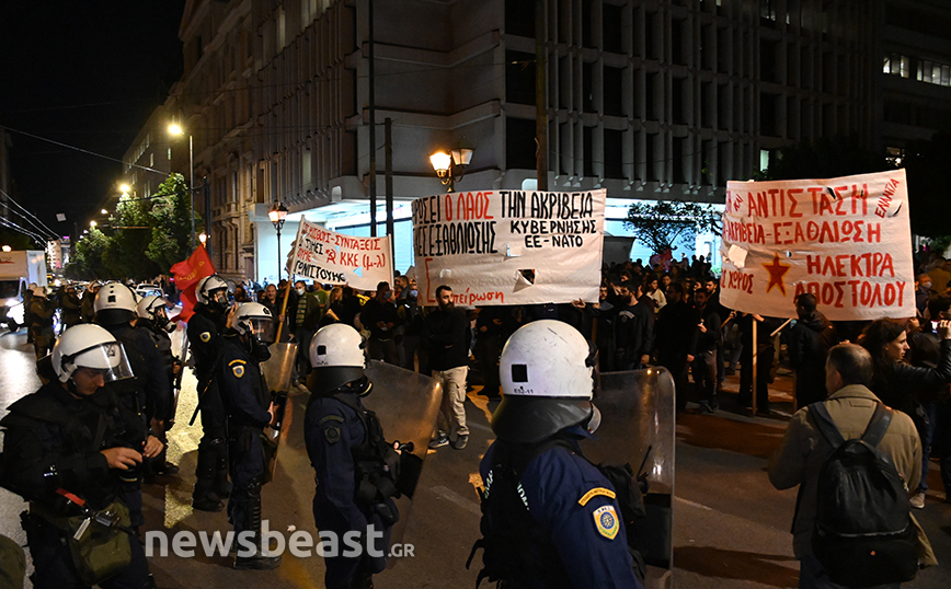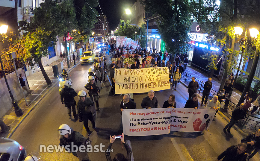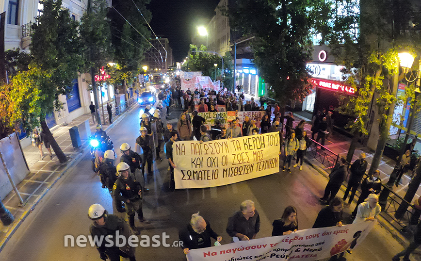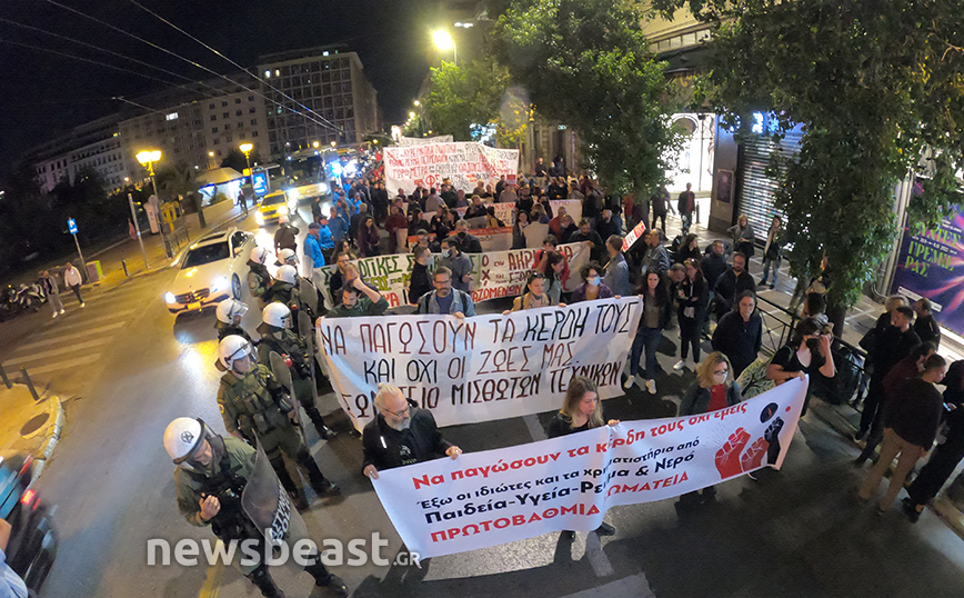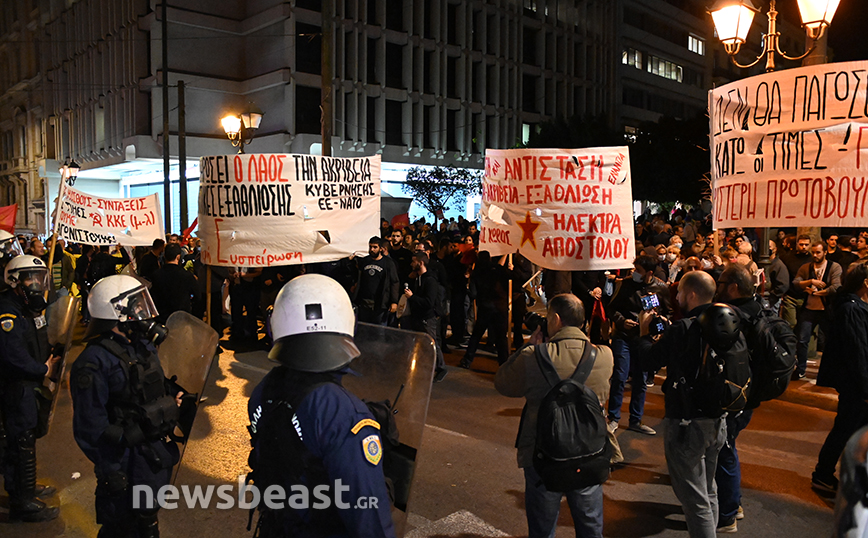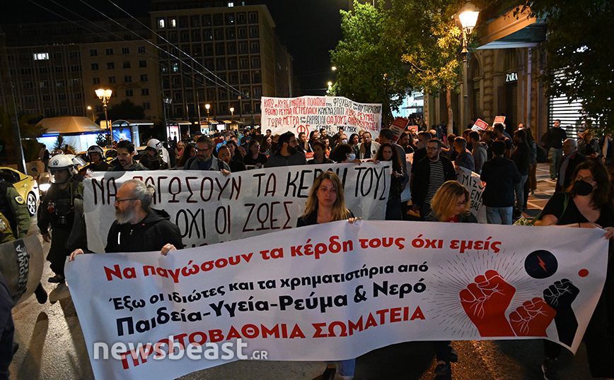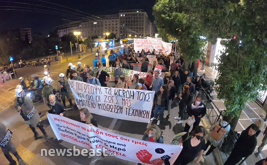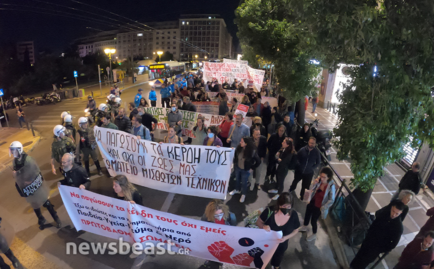 Σωματεία και συνδικάτα συγκεντρώθηκαν αργά το απόγευμα στην πλατεία Κλαυθμώνος, προκειμένου να κάνουν πορεία προς το Σύνταγμα.