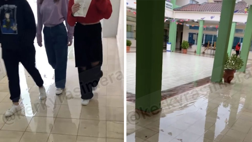 Σύμφωνα με το kerkyrasimera.gr, πλημμύρισε το πρωί το Γυμνάσιο Λευκίμμης.