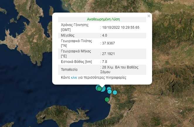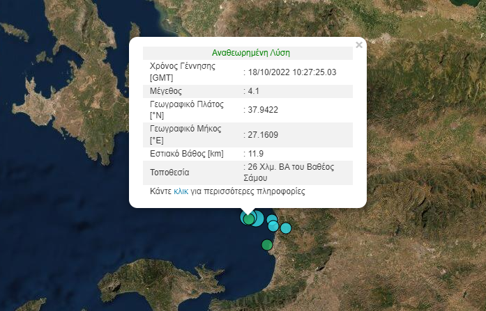 Δύο σεισμοί σε διάστημα 2 λεπτών σημειώθηκαν στα ανοιχτά της Σάμου το μεσημέρι της Τρίτης (18/10).