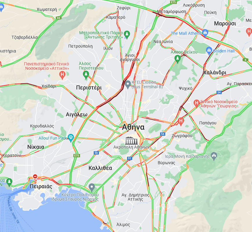 Ο χάρτης με την κίνηση τώρα στους δρόμους…