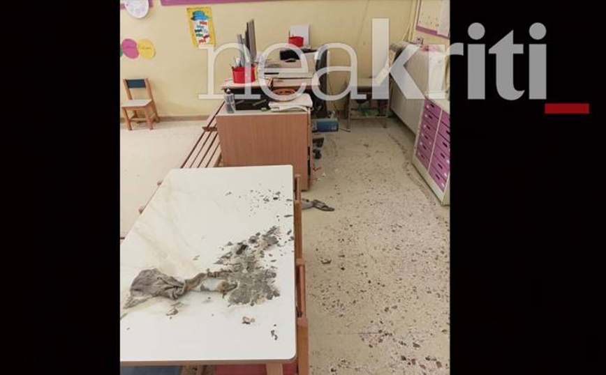 Σύμφωνα με το neakriti, τα μικρά παιδιά ευτυχώς βγήκαν έγκαιρα και με ασφάλεια από το κτήριο χωρίς να τραυματιστεί κανένα.