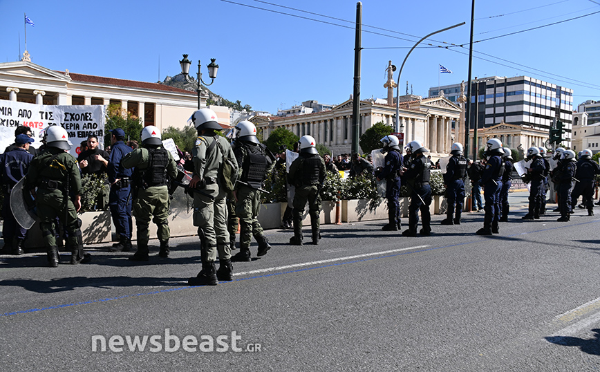 Συλλαλητήριο ενάντια στην εγκατάσταση της πανεπιστημιακής αστυνομίας στα ιδρύματα και την εκπαιδευτική αναδιάρθρωση πραγματοποιούν αυτή την ώρα στα Προπύλαια φοιτητές.