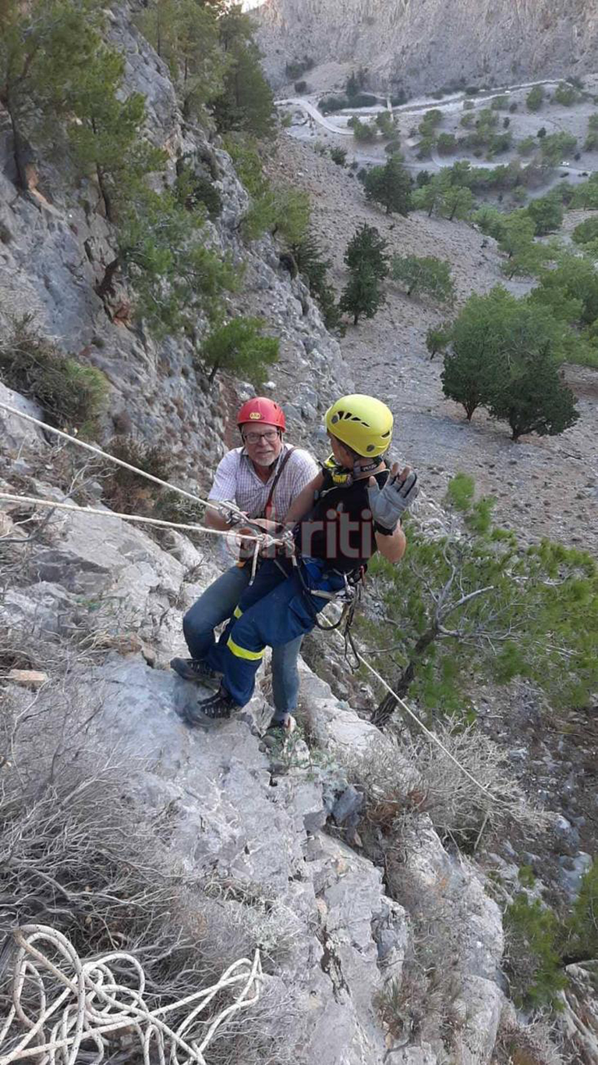 Τεράστια επιχείρηση διάσωσης οργανώθηκε στο Φαράγγι της Σαμαριάς, αφού ένας 65χρονος τουρίστας από την Αυστρία είχε εγκλωβιστεί στα βράχια και μάλιστα κρεμόταν ολόκληρο το βράδυ.