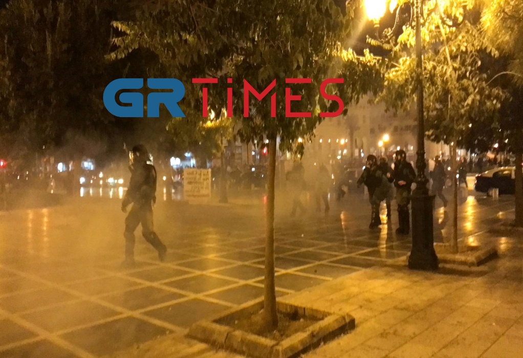 Σύμφωνα με το Grtimes.gr δυνάμεις των ΜΑΤ δέχθηκαν επίθεση από ομάδα κουκουλοφόρων όταν έσπασαν μάρμαρα από το σημείο και τα πέταξαν στους αστυνομικούς.