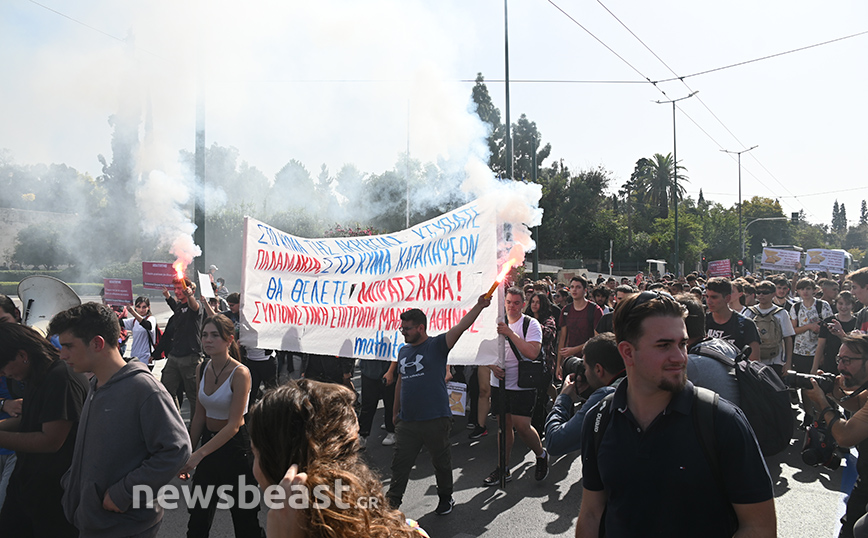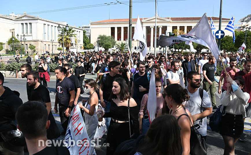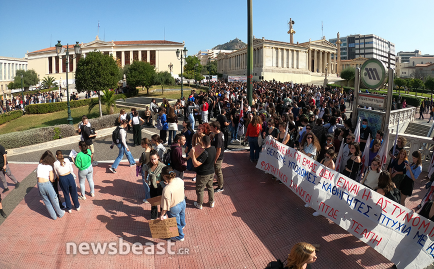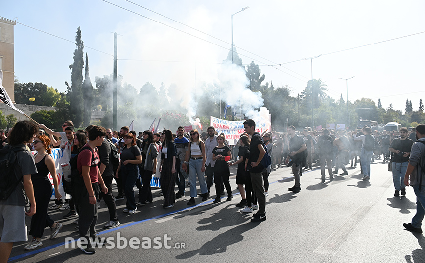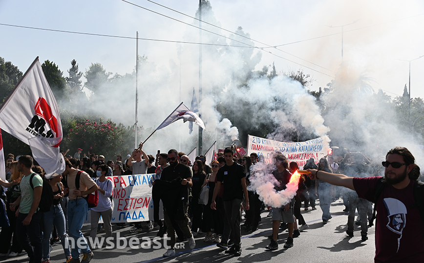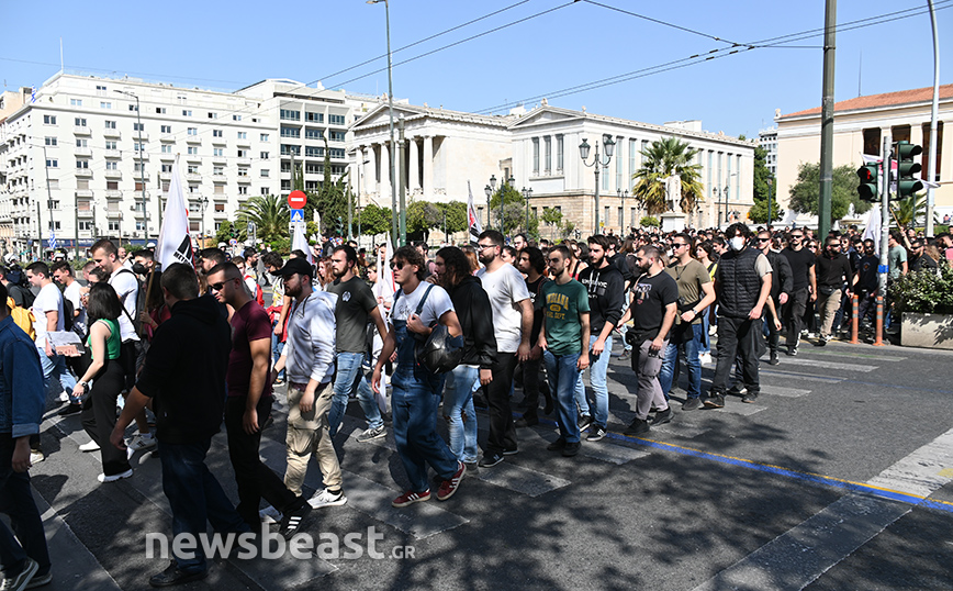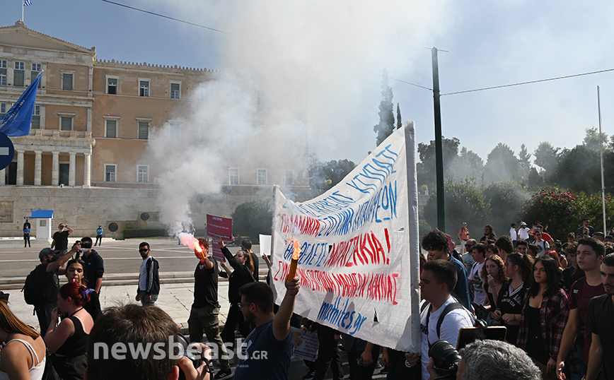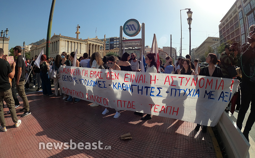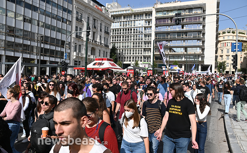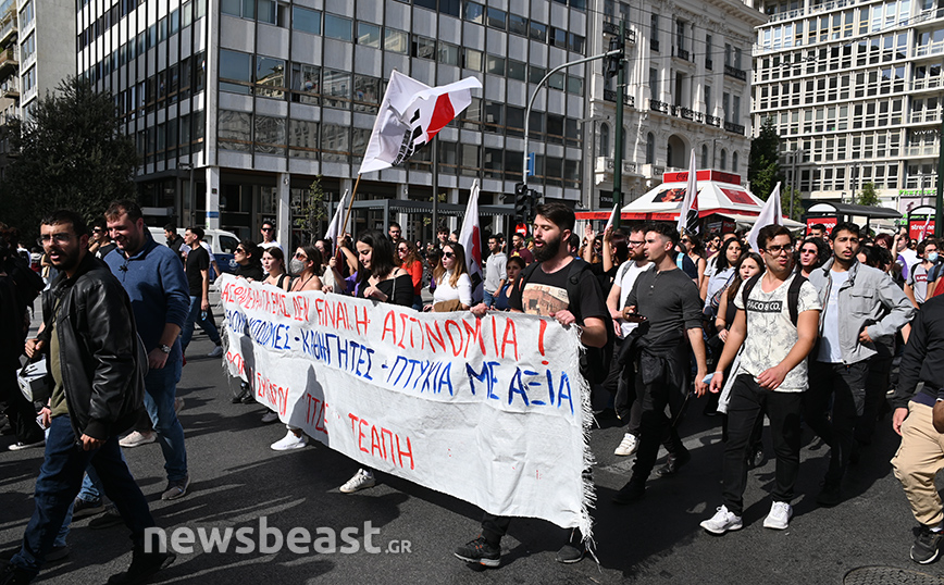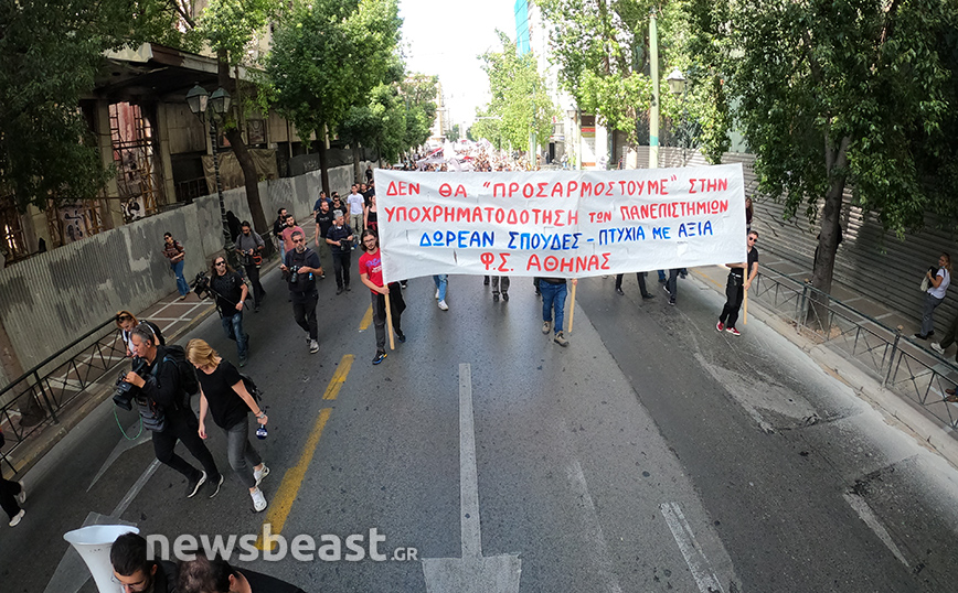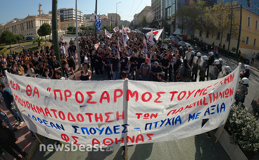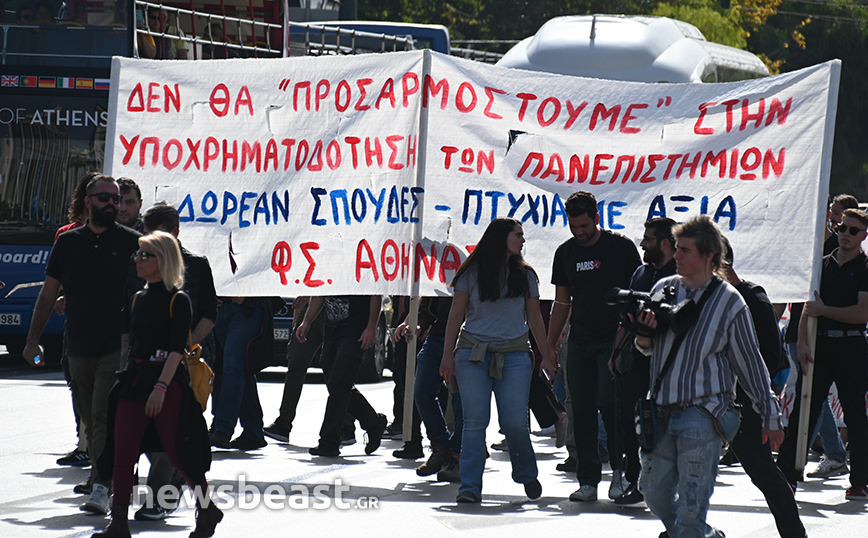 Οι φοιτητές, μεταξύ άλλων, διεκδικούν δωρεάν σπουδές, 300 ευρώ μηνιαίο στεγαστικό επίδομα, ενώ λένε και «όχι» στην πανεπιστημιακή αστυνομία.