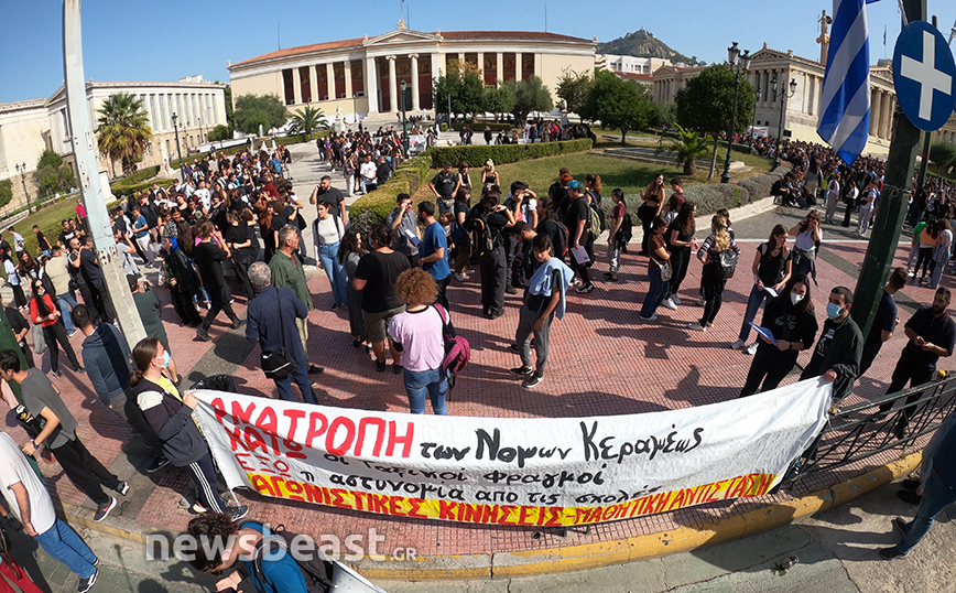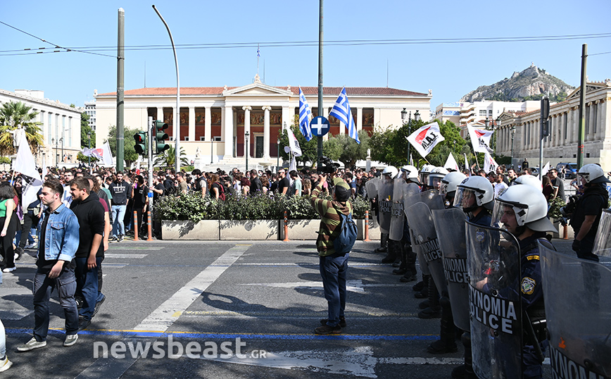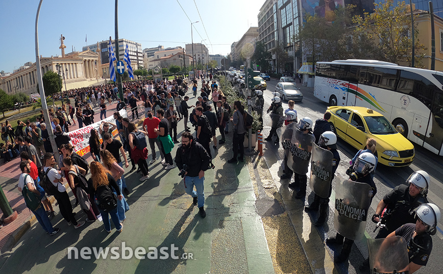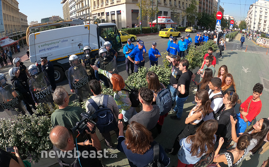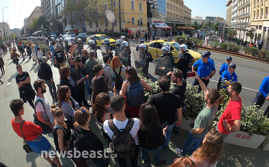 Σε εξέλιξη είναι η συγκέντρωση φοιτητών και μαθητών στα Προπύλαια με τις δυνάμεις της Αστυνομίας να βρίσκονται στο σημείο προκειμένου να τους εμποδίσουν να κάνουν πορεία.