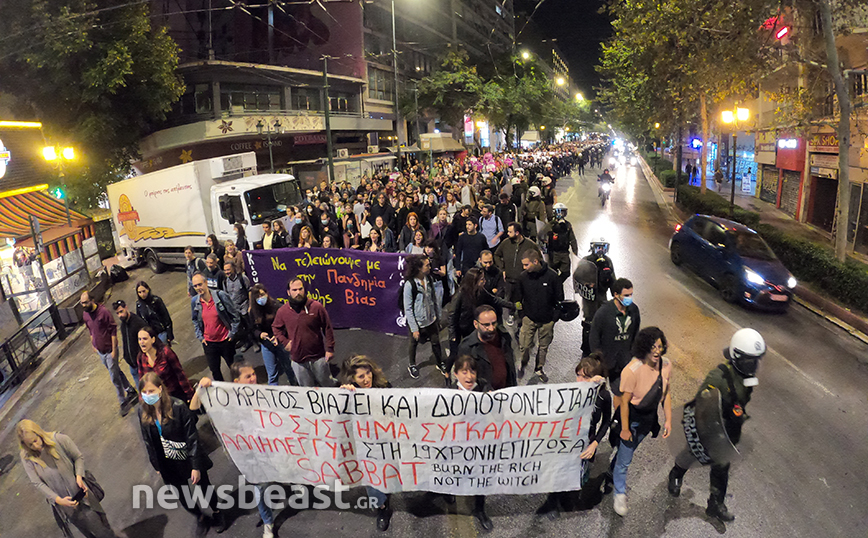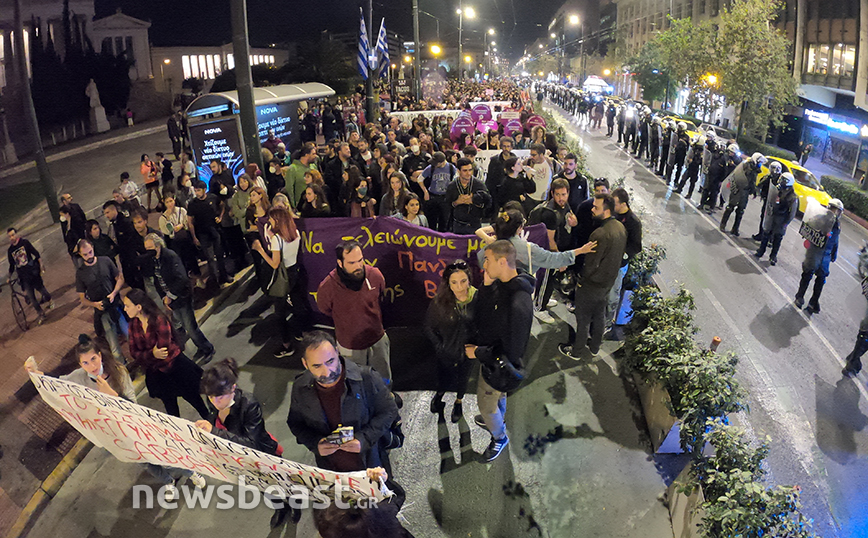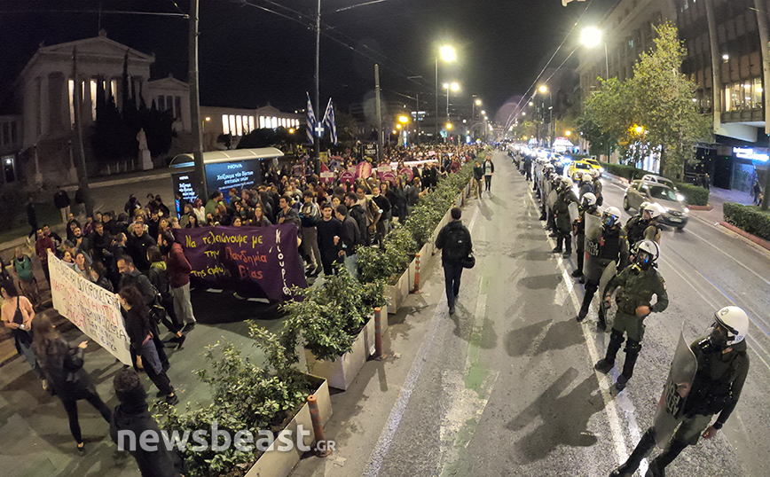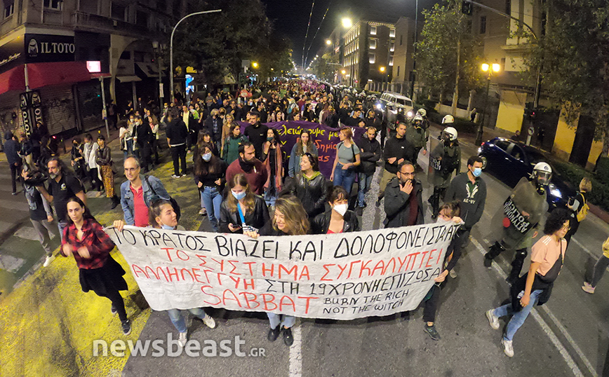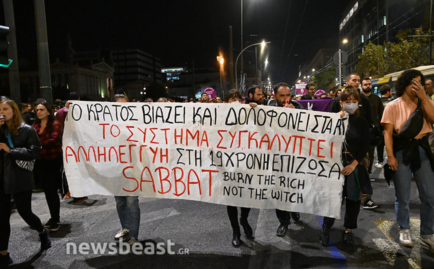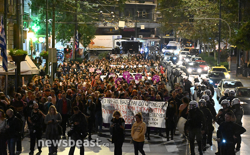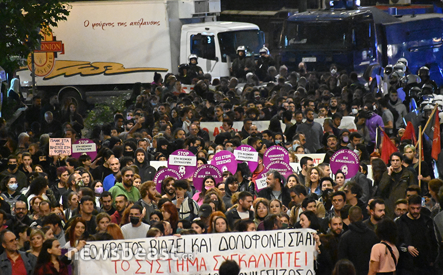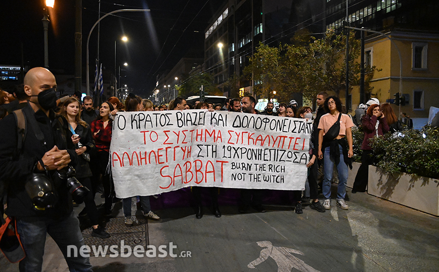 Στα Προπύλαια πραγματοποιήθηκε συγκέντρωση διαμαρτυρίας από συλλογικότητες, με αφορμή τον βιασμό που ισχυρίζεται ότι υπέστη 19χρονη στο Αστυνομικό Τμήμα της Ομόνοιας από δύο αστυνομικούς.